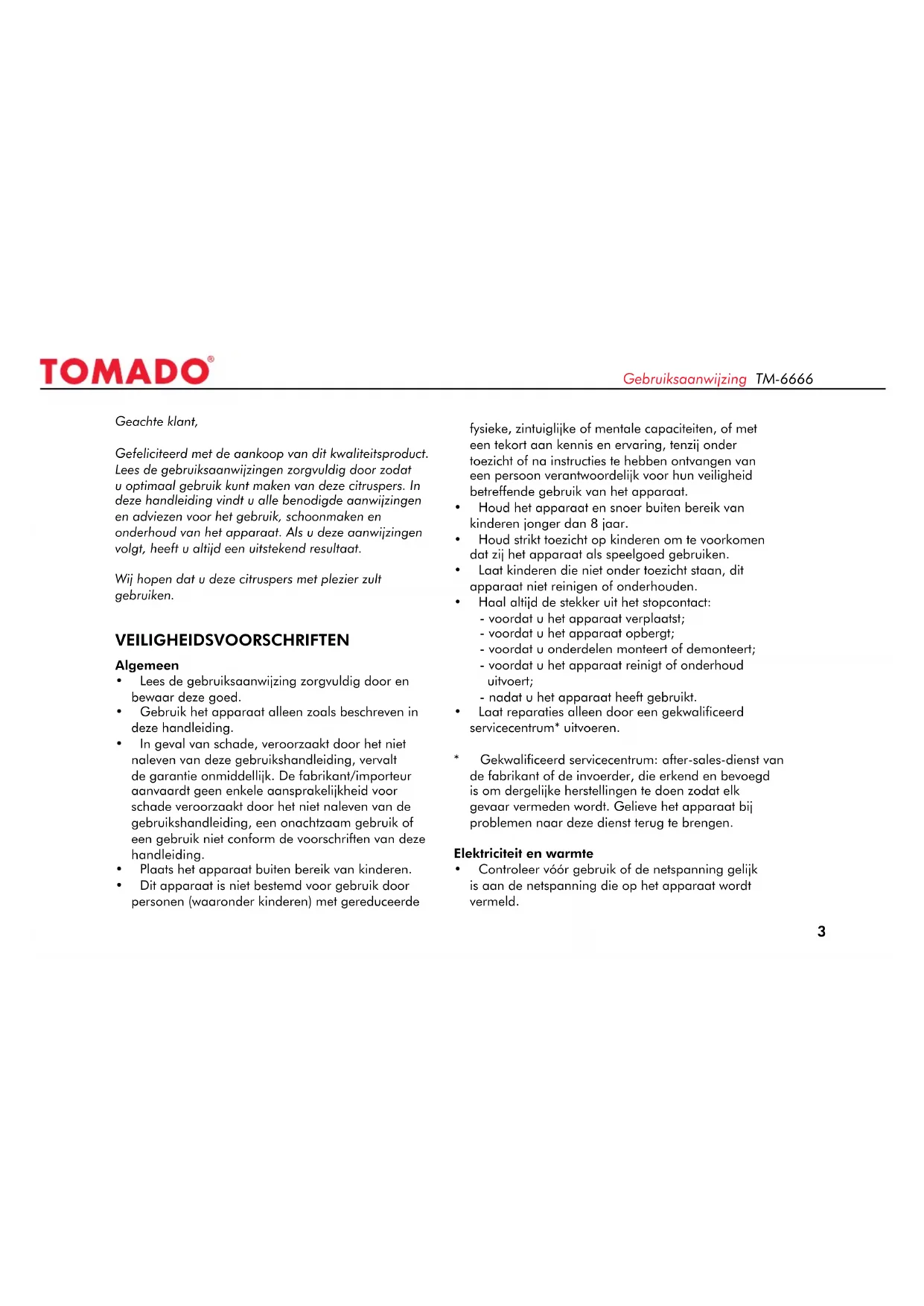 GEBRUIKSAANWIJZING TM6666 Tomado