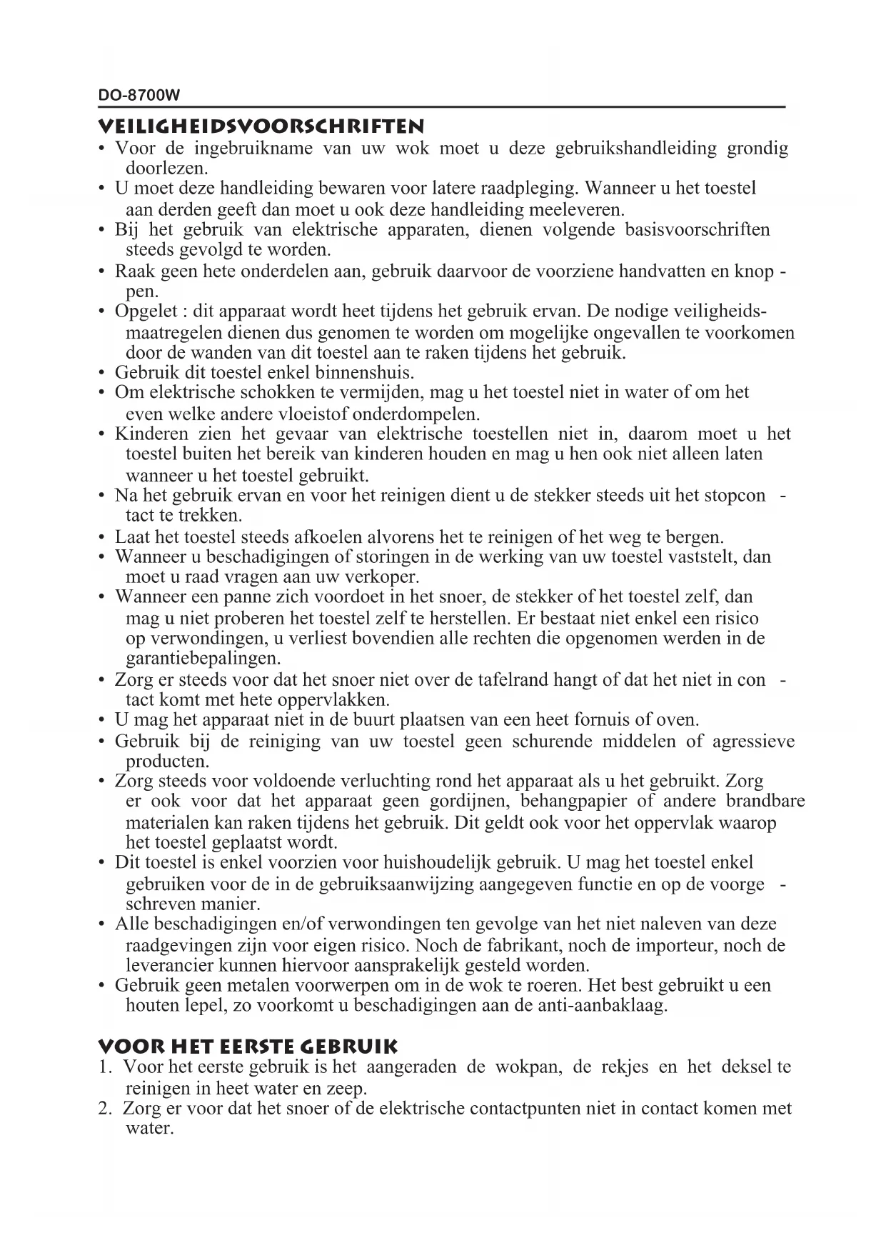GEBRUIKSAANWIJZING DO8700W DOMO