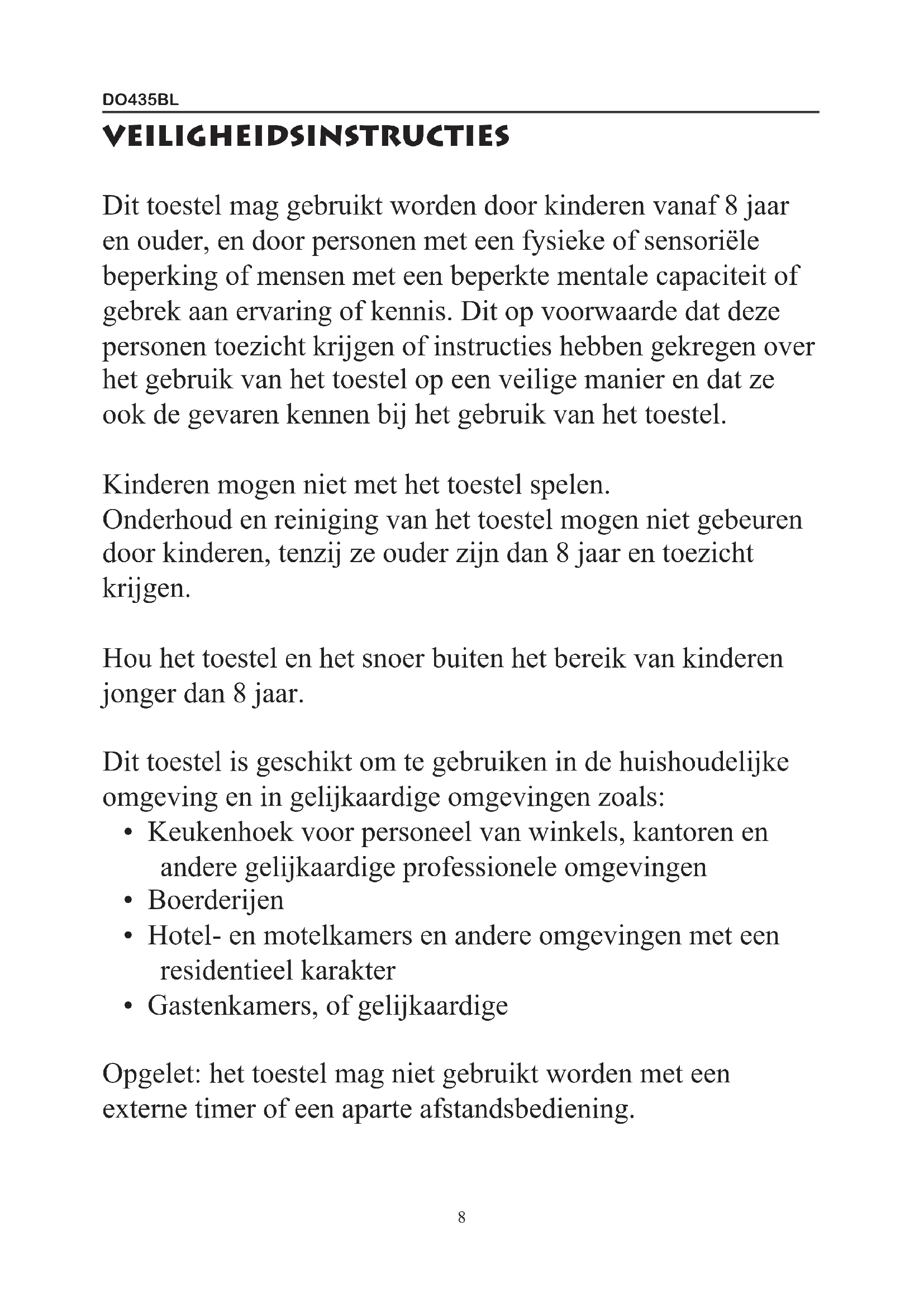 GEBRUIKSAANWIJZING DO435BL DOMO