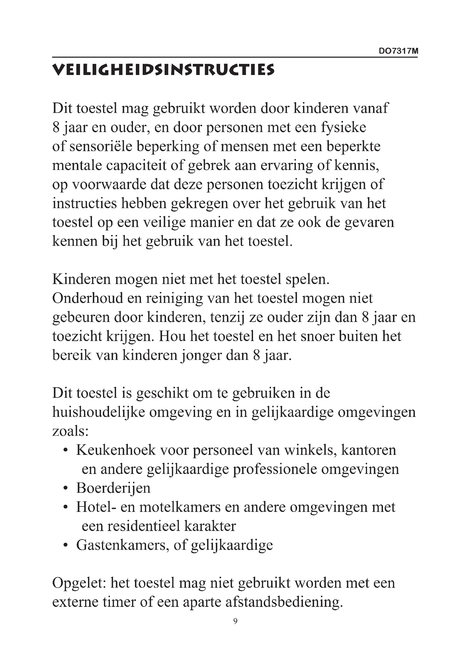 GEBRUIKSAANWIJZING DO7317M DOMO
