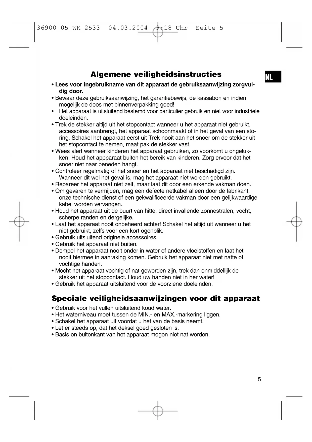36900-05-WK 2533 04.03.2004 9:18 Uhr Seite 5Inbedrijfstelling van het apparaat Kook voor gebruik van het water de waterkoker 2x uit met schoon water zonder hieraan middelen toe te voegen.