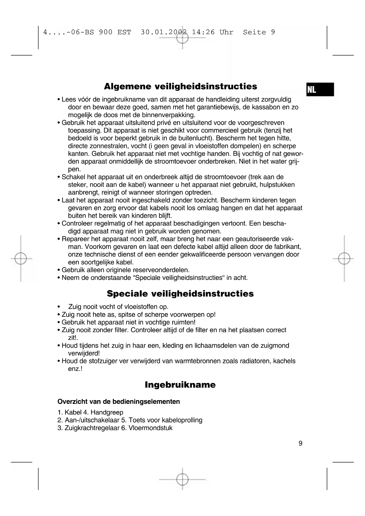 - Houd de stofzuiger ver verwijderd van warmtebronnen zoals radiatoren, kachels enz.! Ingebruikname Overzicht van de bedieningselementen