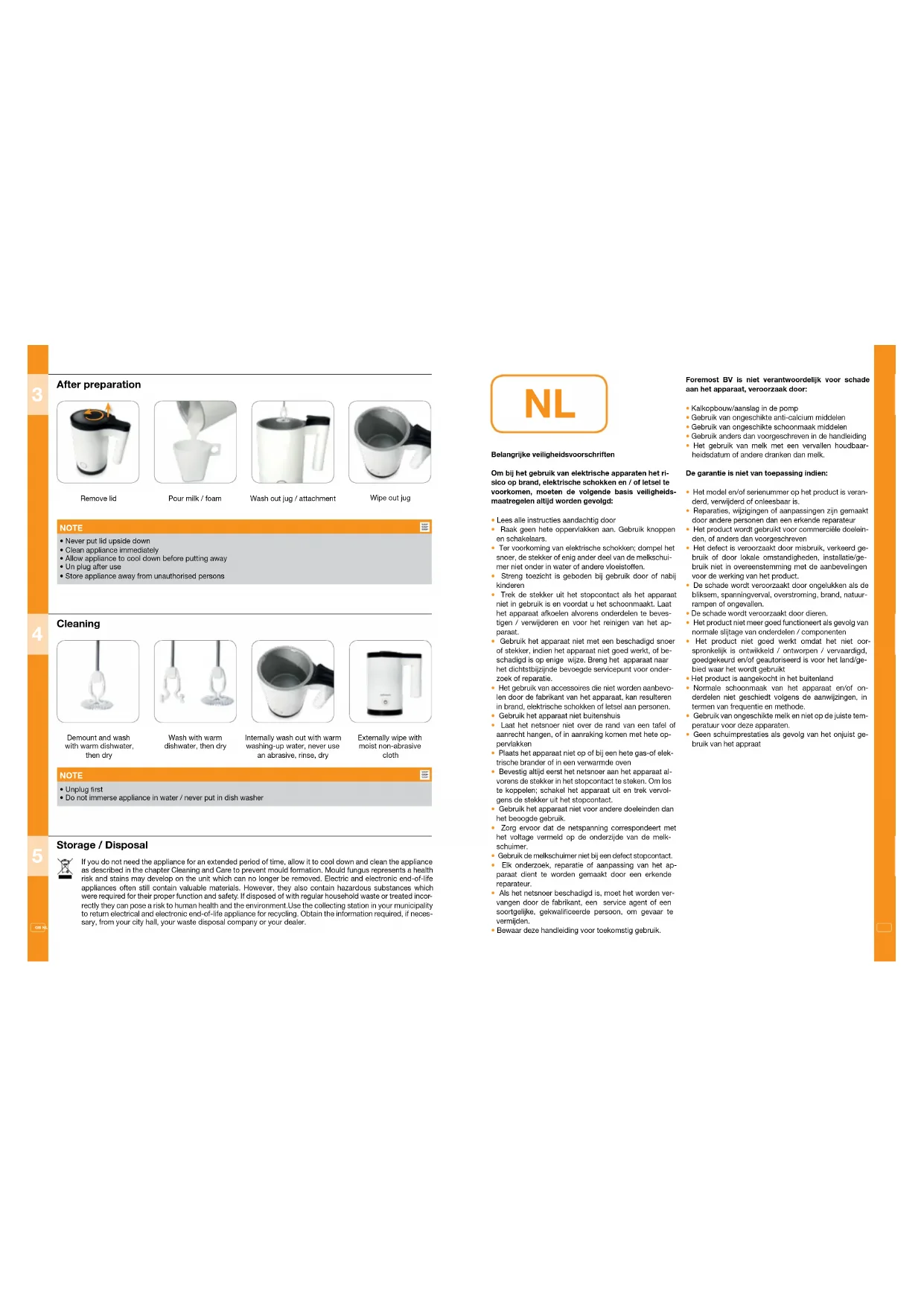 - Ter voorkoming van elektrische schokken; dompel het snoer, de stekker of enig ander deel van de melkschui- mer niet onder in water of andere vloeistoffen.