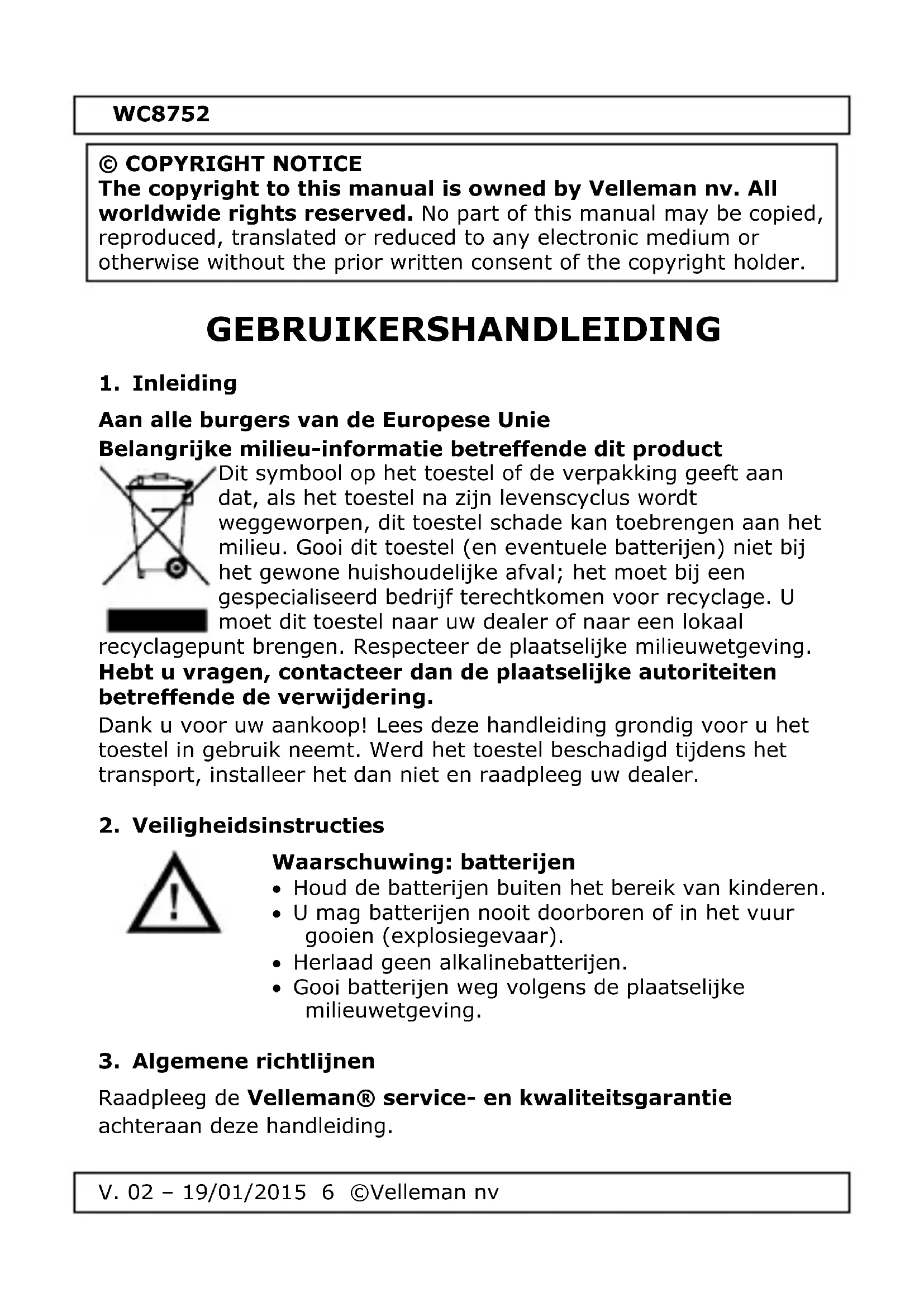 GEBRUIKSAANWIJZING WC8752 VELLEMAN