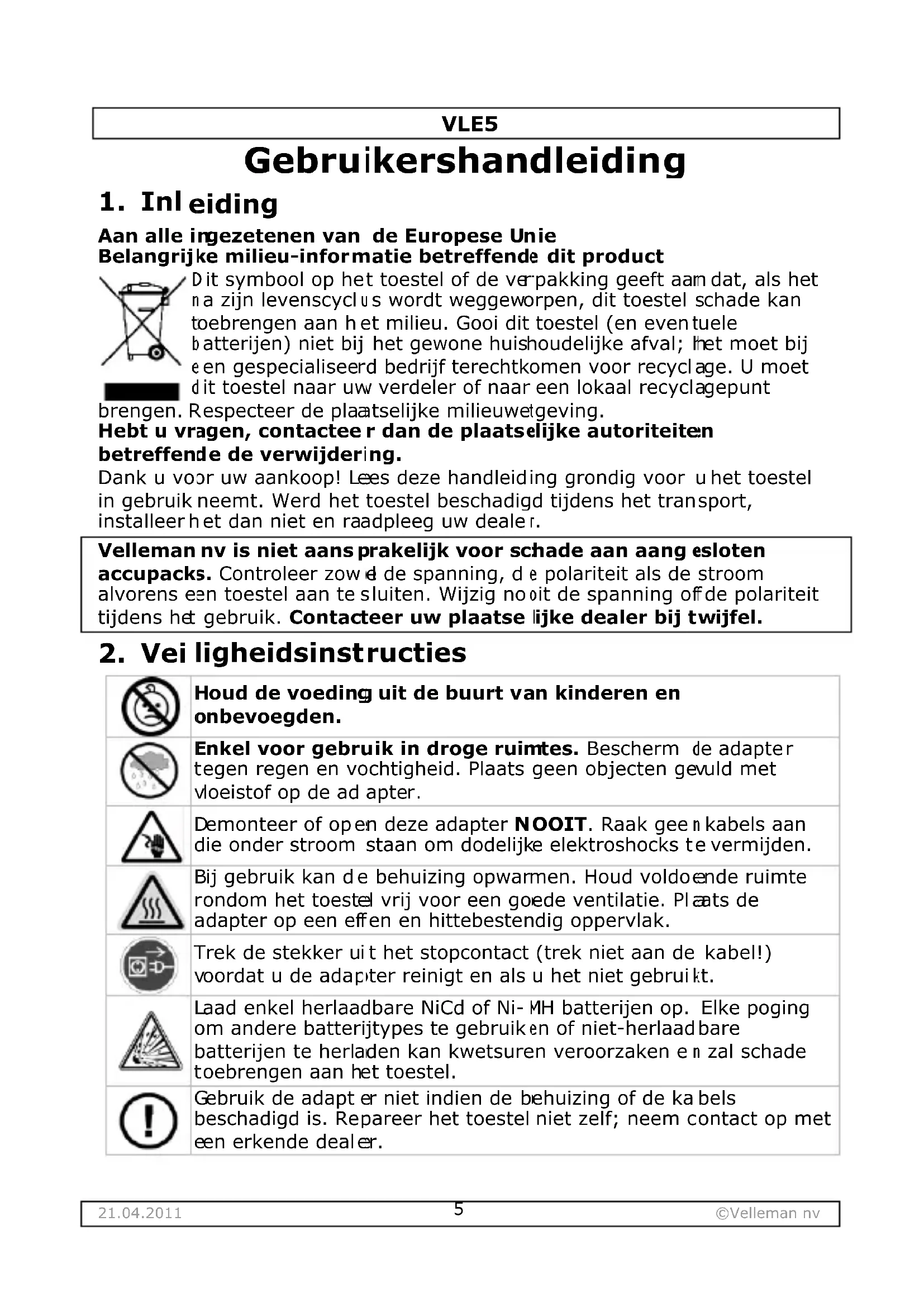 VLE5 - Batterijlader VELLEMAN - Gratis gebruiksaanwijzing en handleiding