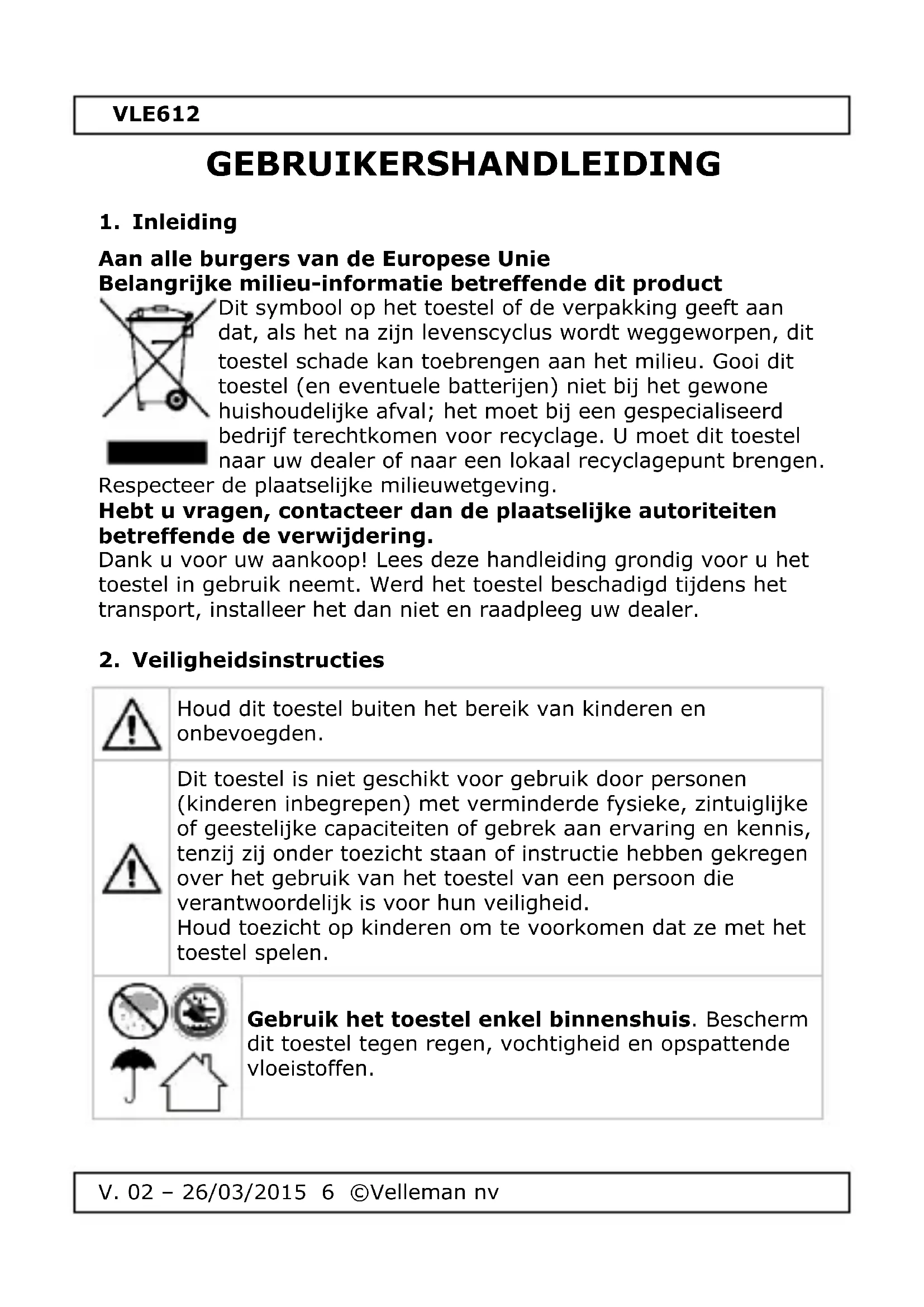 GEBRUIKSAANWIJZING VLE612 VELLEMAN