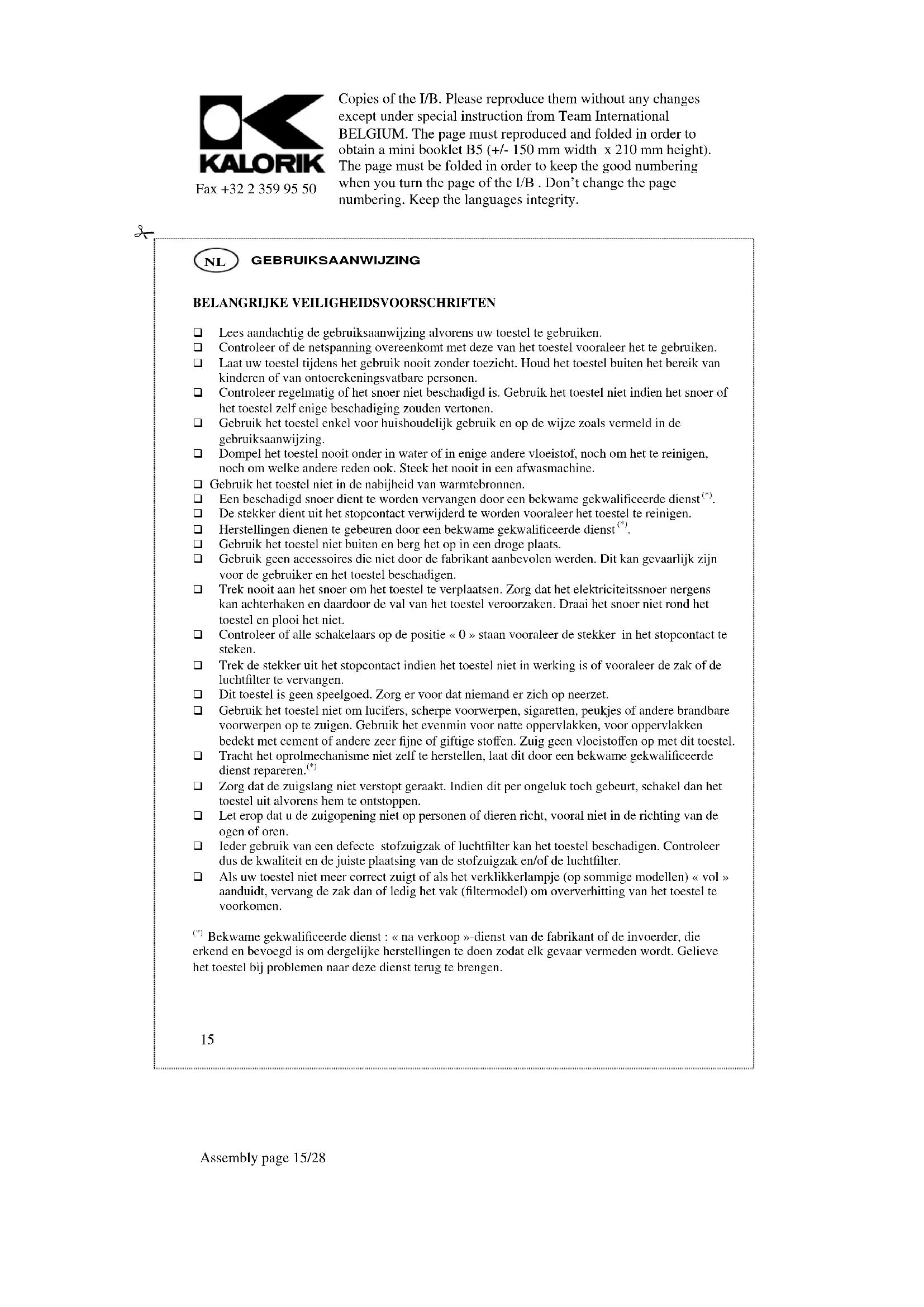 □ Dit toestel is geen speelgoed. Zorg er voor dat niemand er zich op neerzet.