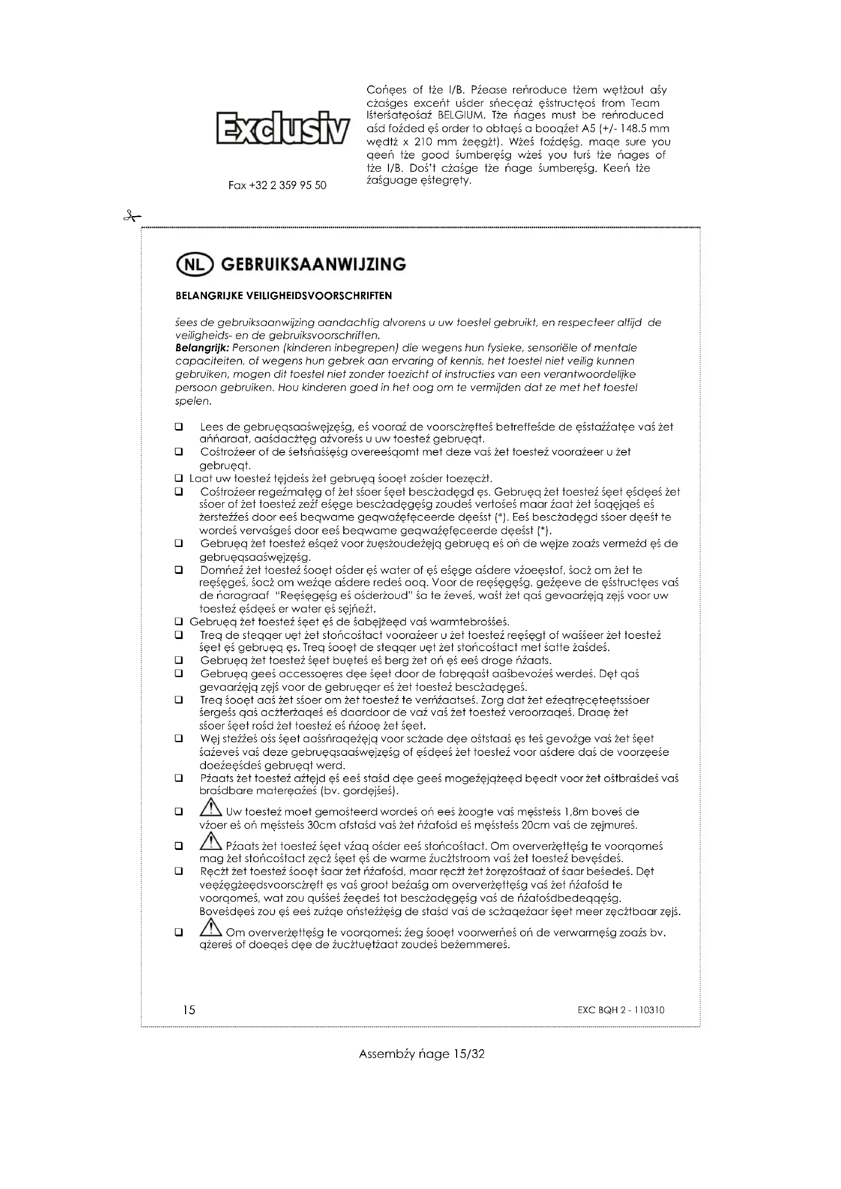 GEBRUIKSAANWIJZING EXC BQH 2 KALORIK