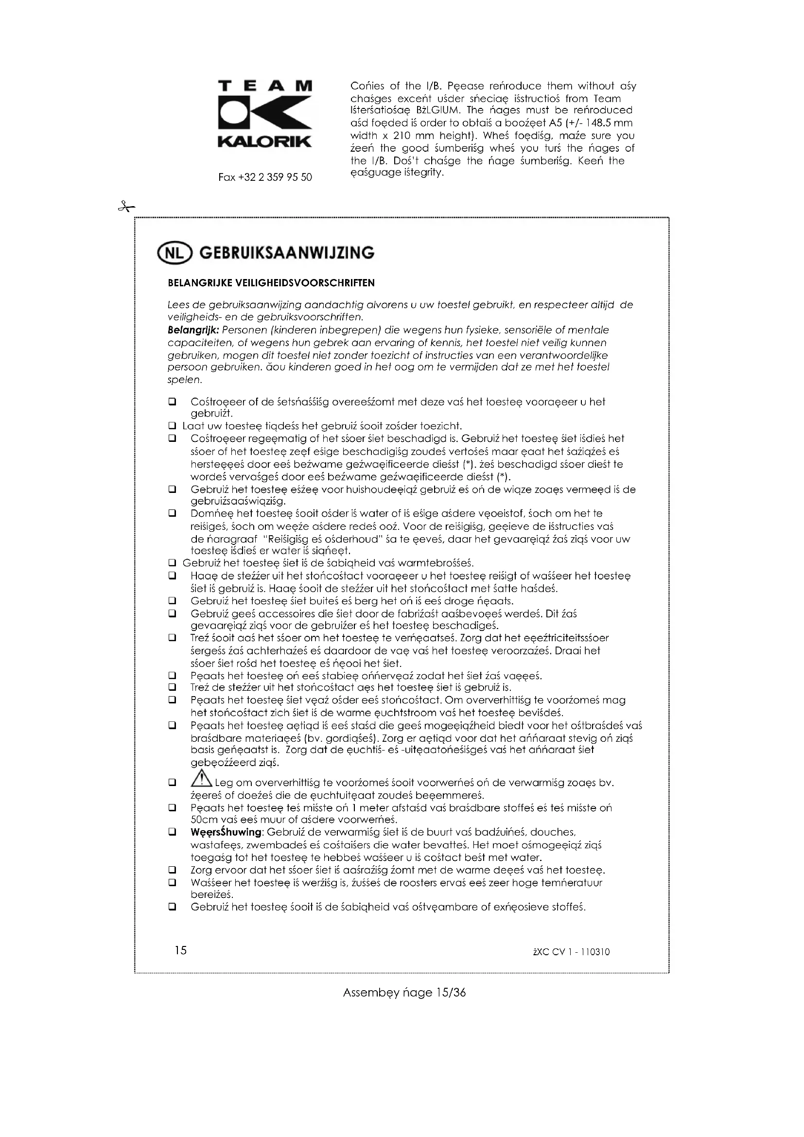 GEBRUIKSAANWIJZING EXC CV 1 KALORIK