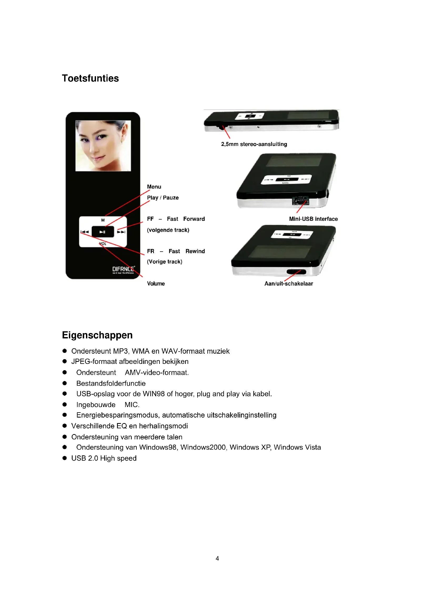 MP1010 - Mp3-speler Difrnce - Gratis gebruiksaanwijzing en handleiding