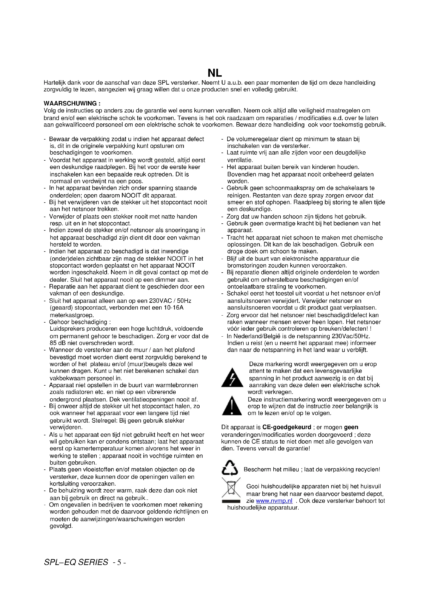 Gooi huishoudelijke apparaten niet bij het huisvuil maar breng het naar een daarvoor bestemd depot, zie www.nvmp.nl . Ook deze versterker behoort tot