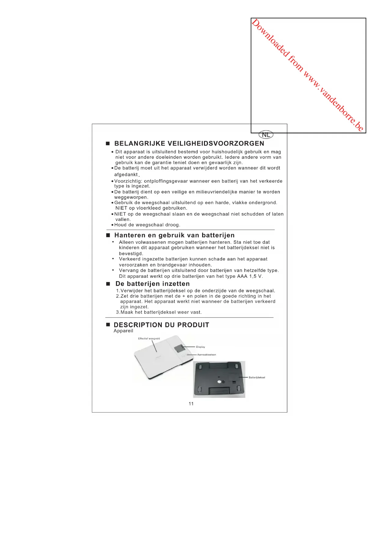 Appareil Effectief weegveld Display Aanraaktoetsen BatterijdekselDownloaded from www.vandenborre.be