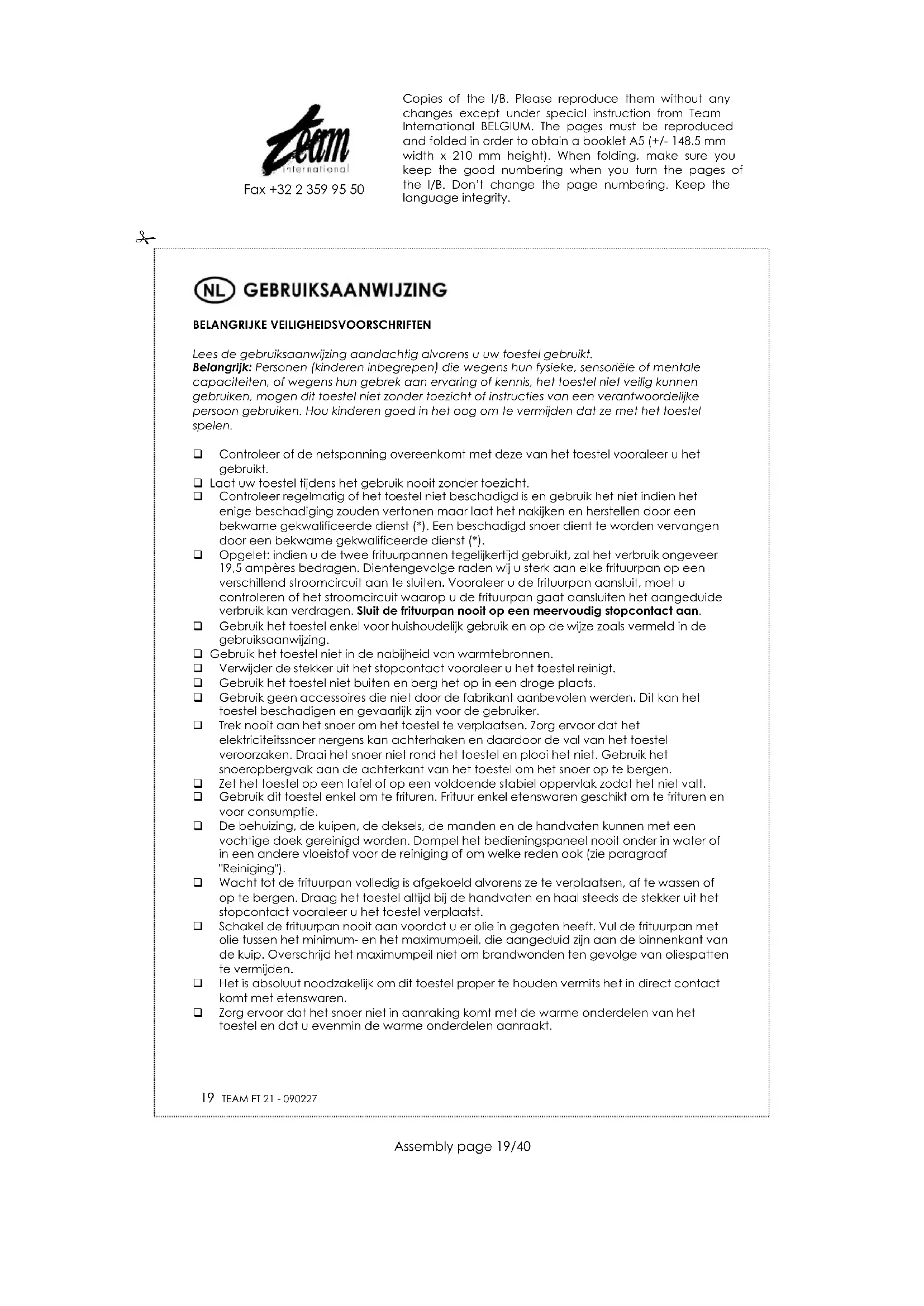 FT 21 - Friteuse TEAM - Gratis gebruiksaanwijzing en handleiding