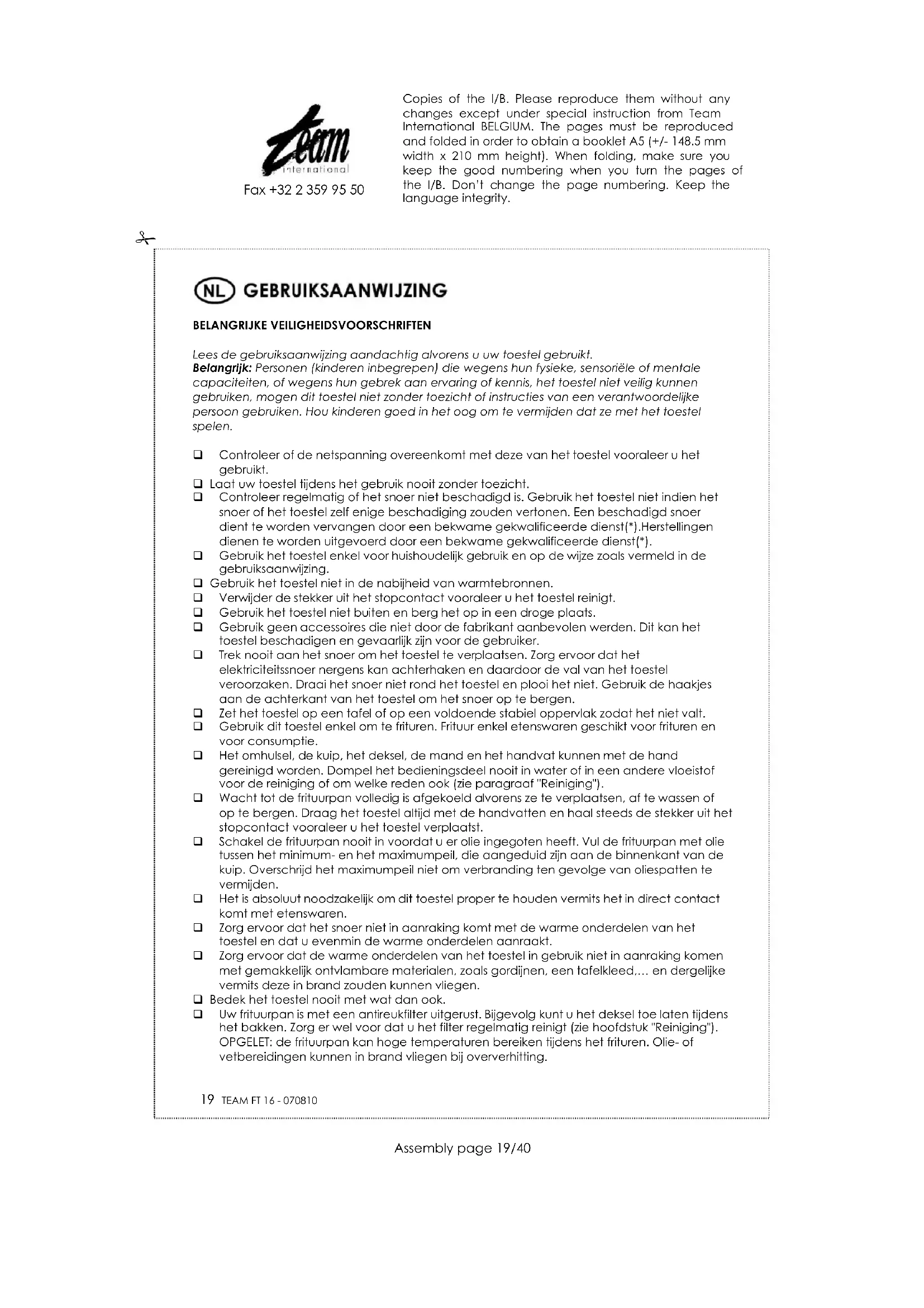 GEBRUIKSAANWIJZING FT 16 TEAM