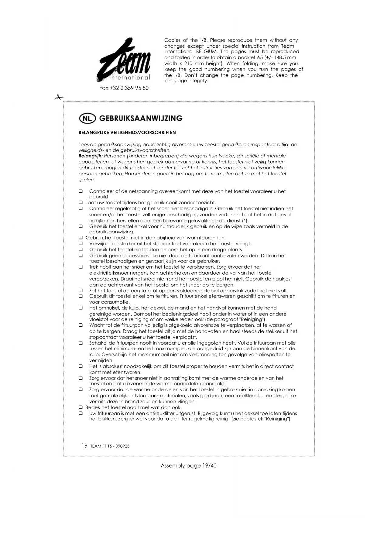 FT 15 - Friteuse TEAM - Gratis gebruiksaanwijzing en handleiding