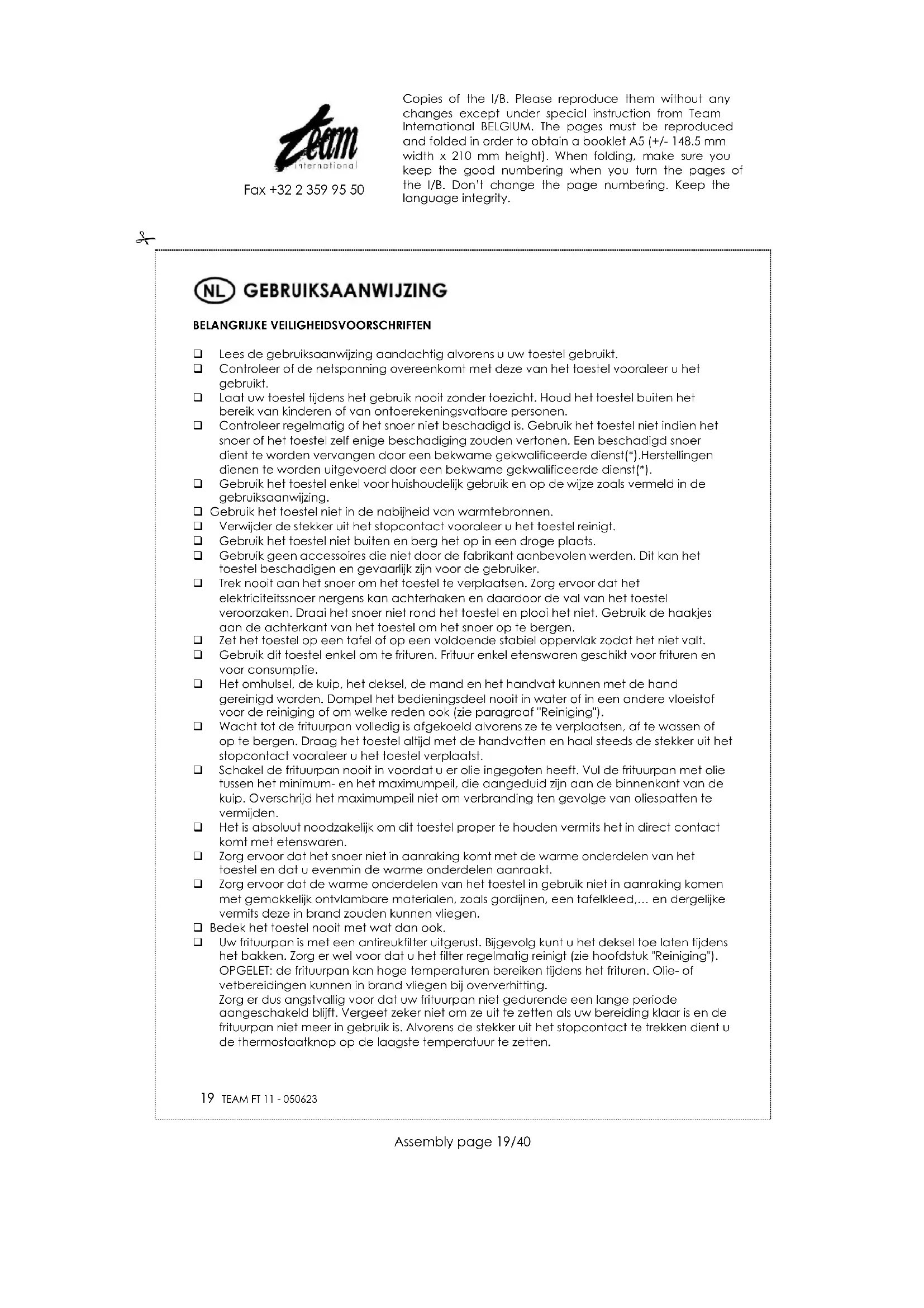 FT 11 - Friteuse TEAM - Gratis gebruiksaanwijzing en handleiding