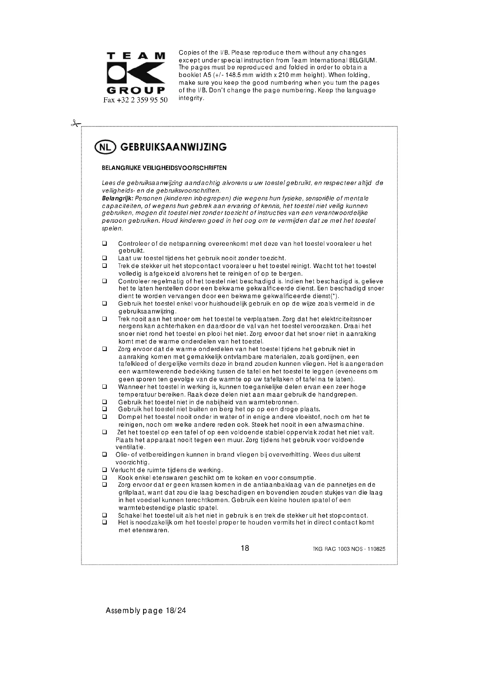 GEBRUIKSAANWIJZING TKG RAC 1003 NOS TEAM