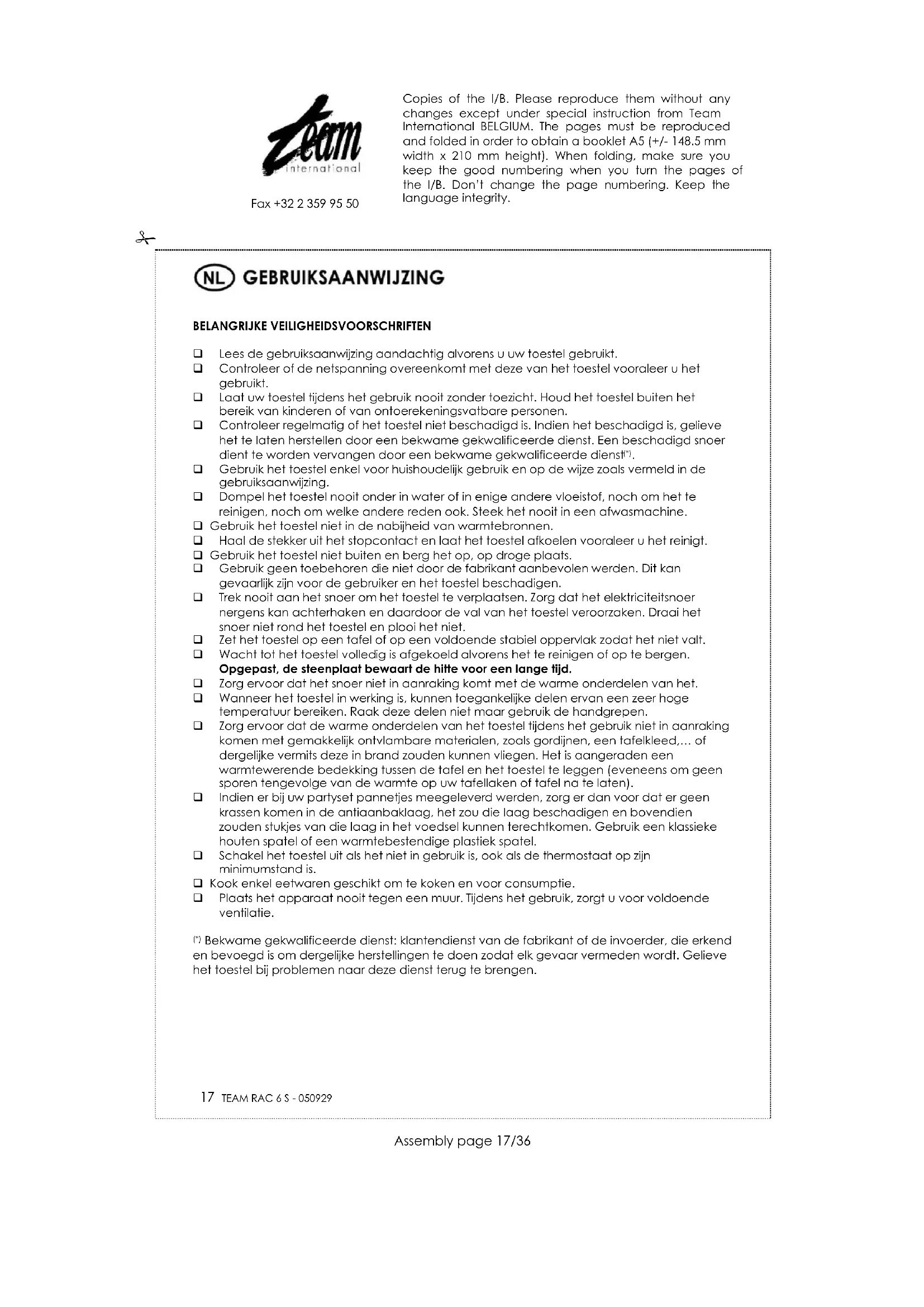 GEBRUIKSAANWIJZING RAC 6 TEAM