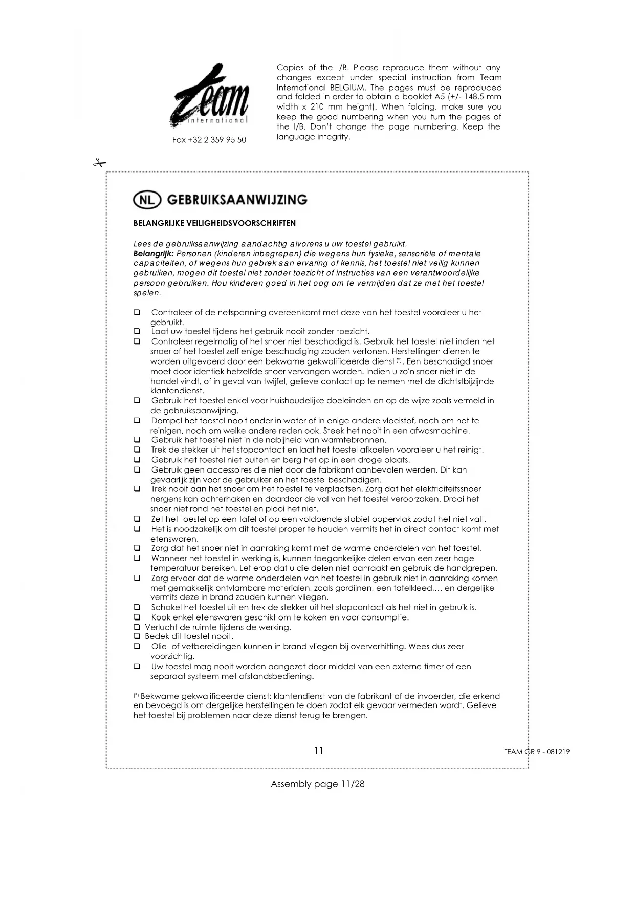 GEBRUIKSAANWIJZING GR 9 TEAM
