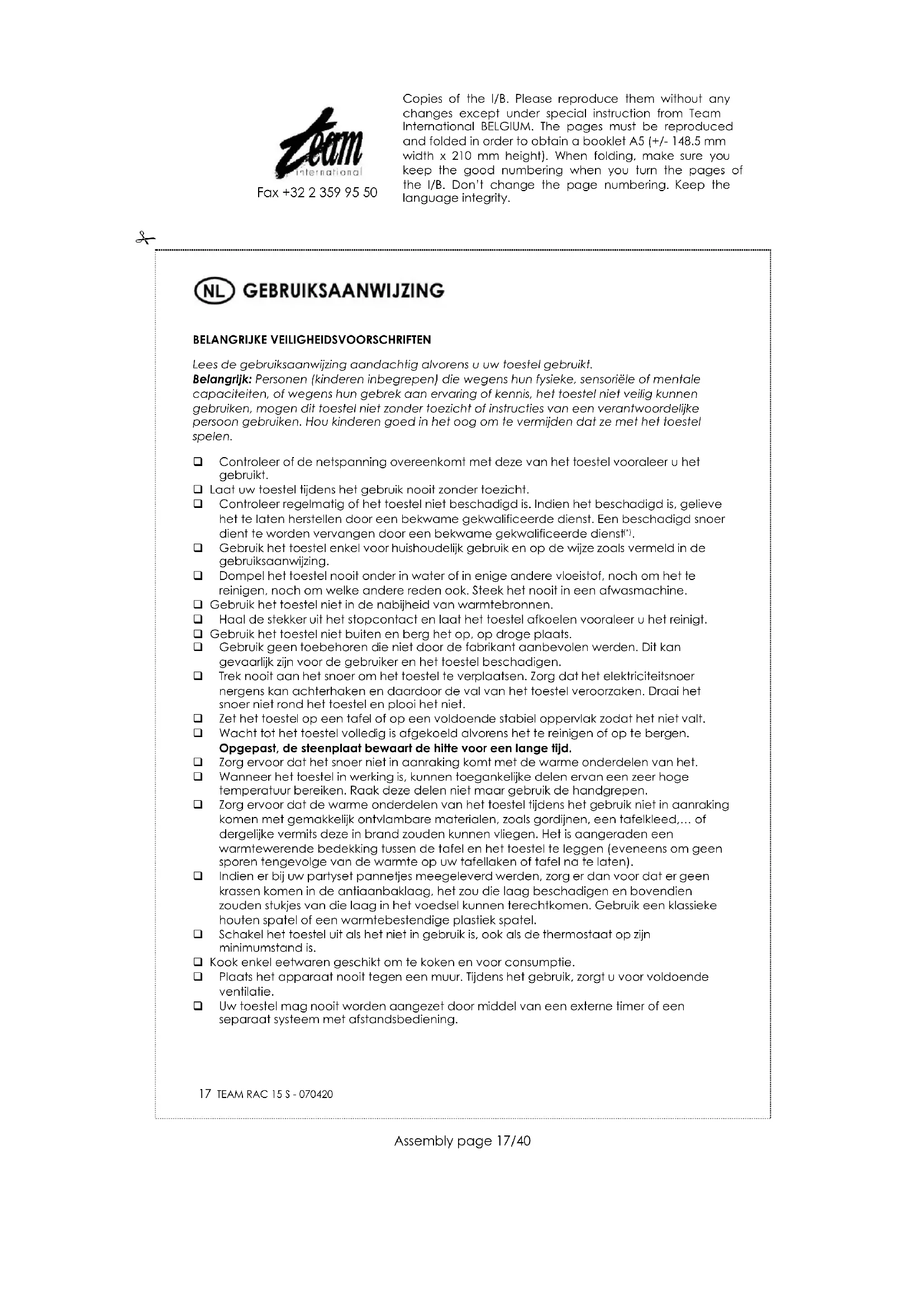 GEBRUIKSAANWIJZING RAC 15 S TEAM