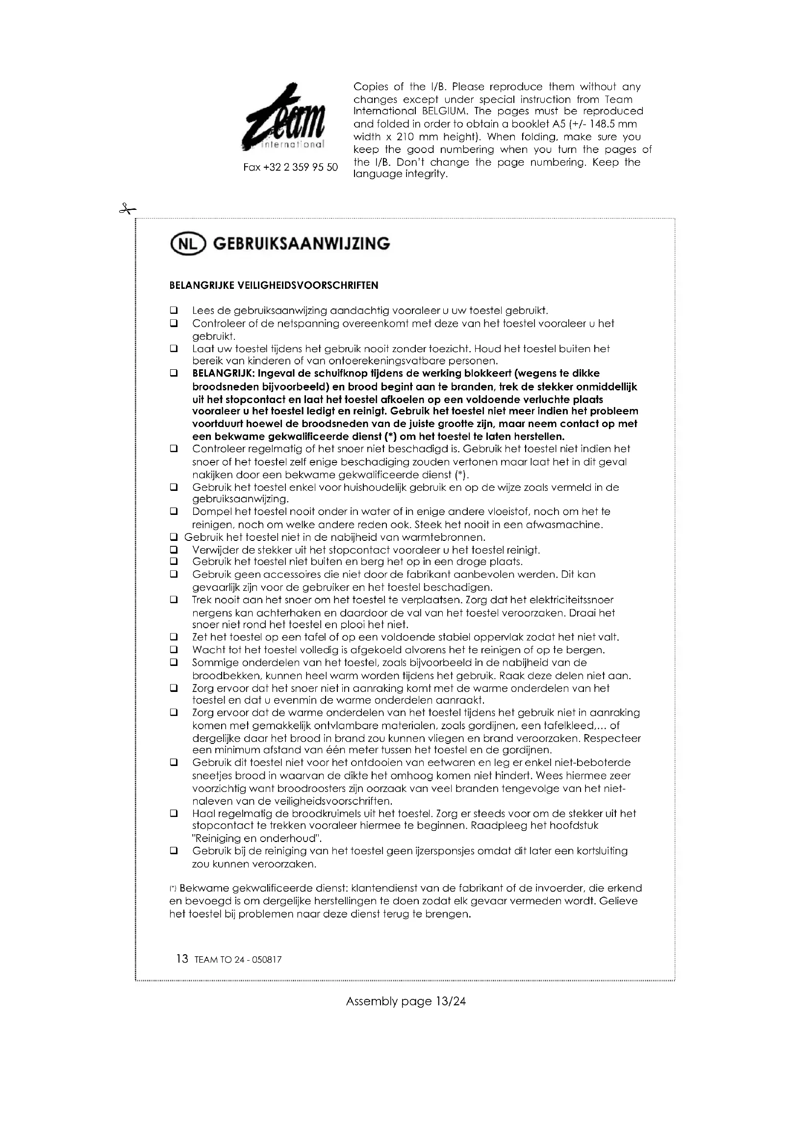 TO 24 - Broodrooster TEAM - Gratis gebruiksaanwijzing en handleiding