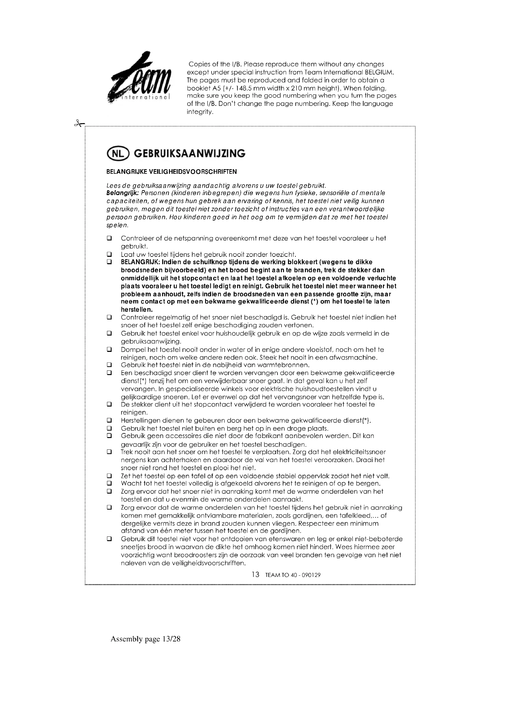 GEBRUIKSAANWIJZING TO 40 TEAM