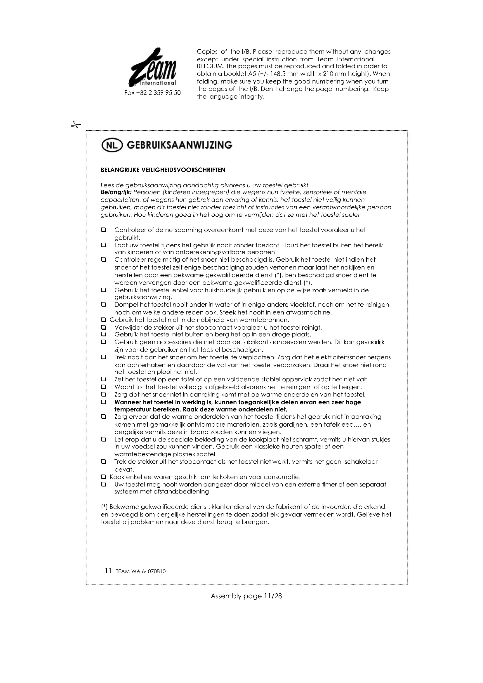 GEBRUIKSAANWIJZING WA 6 TEAM