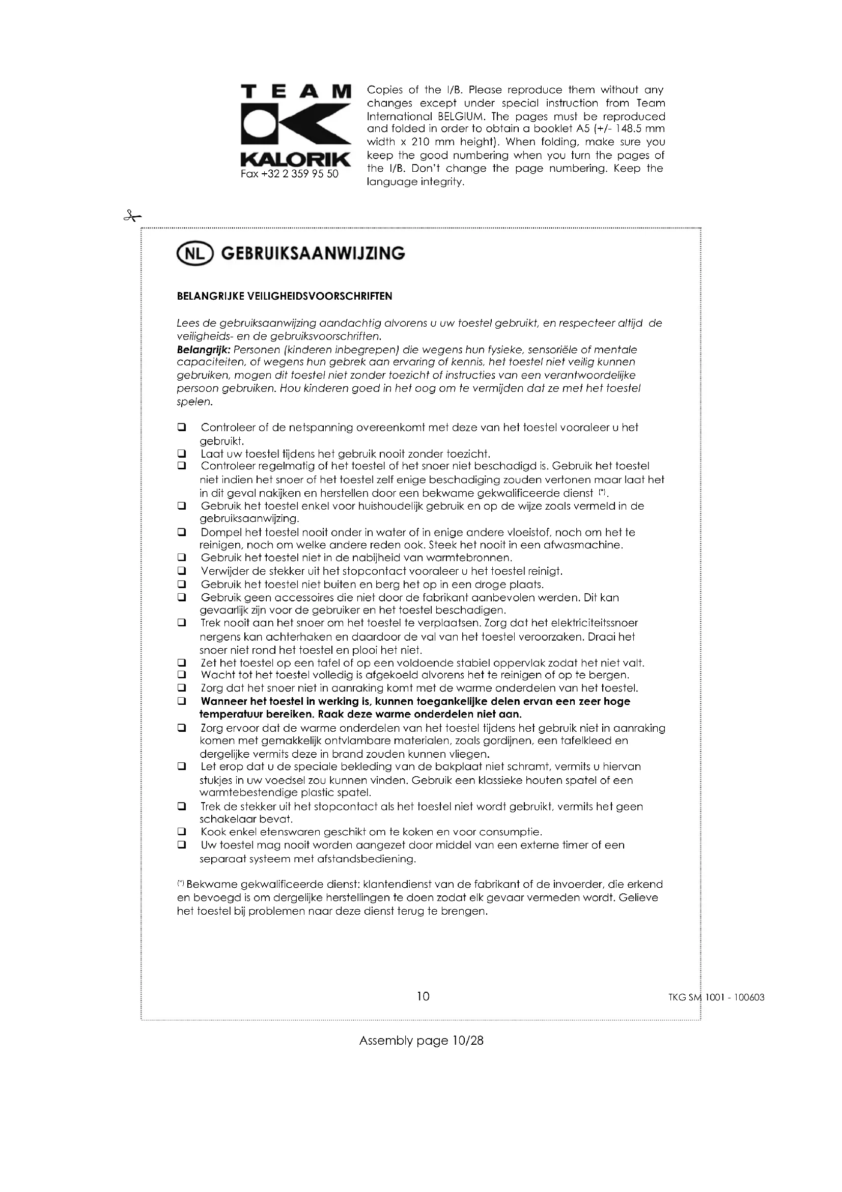 GEBRUIKSAANWIJZING TKG SM 1001 TEAM