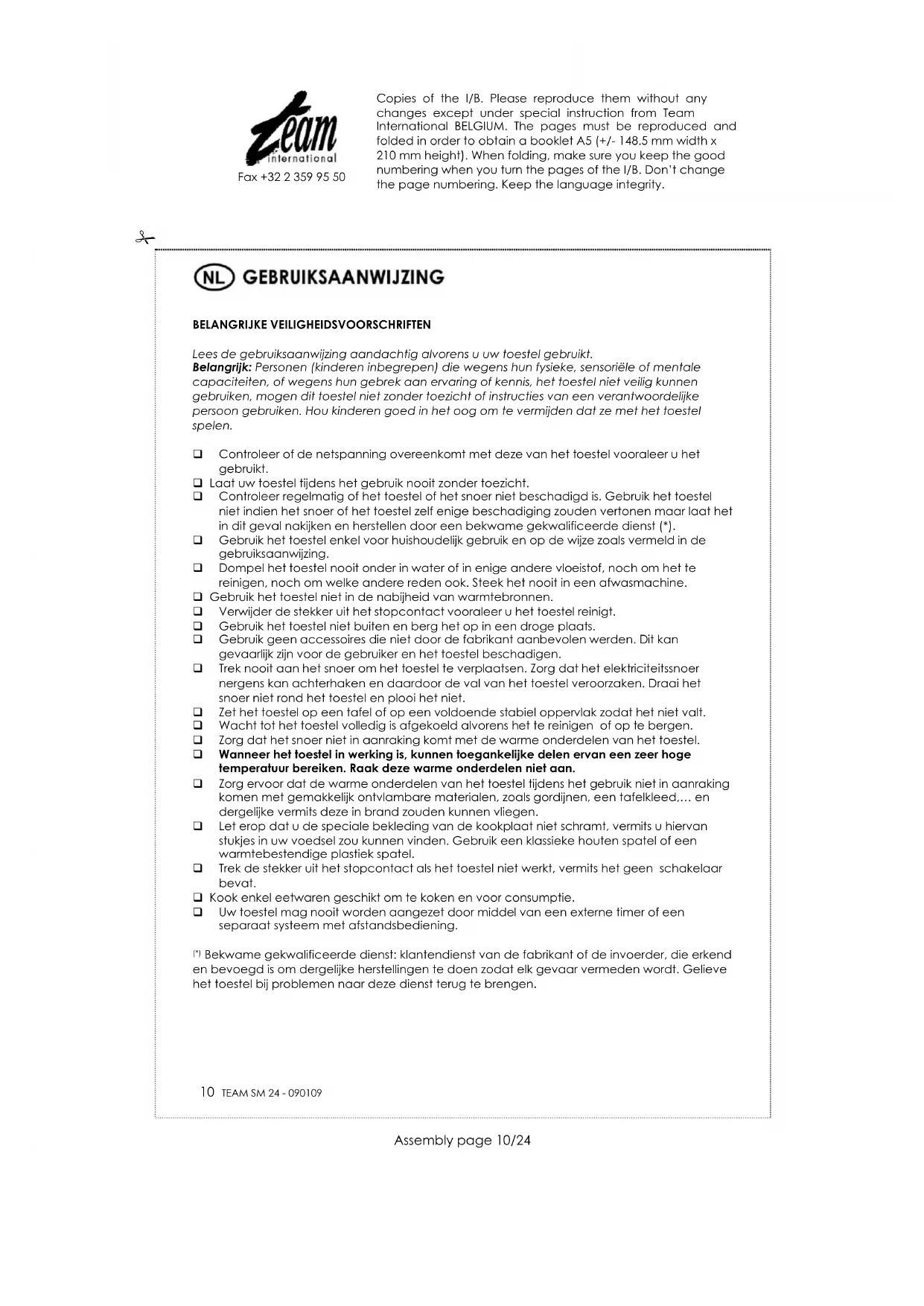 GEBRUIKSAANWIJZING SM 24 TEAM
