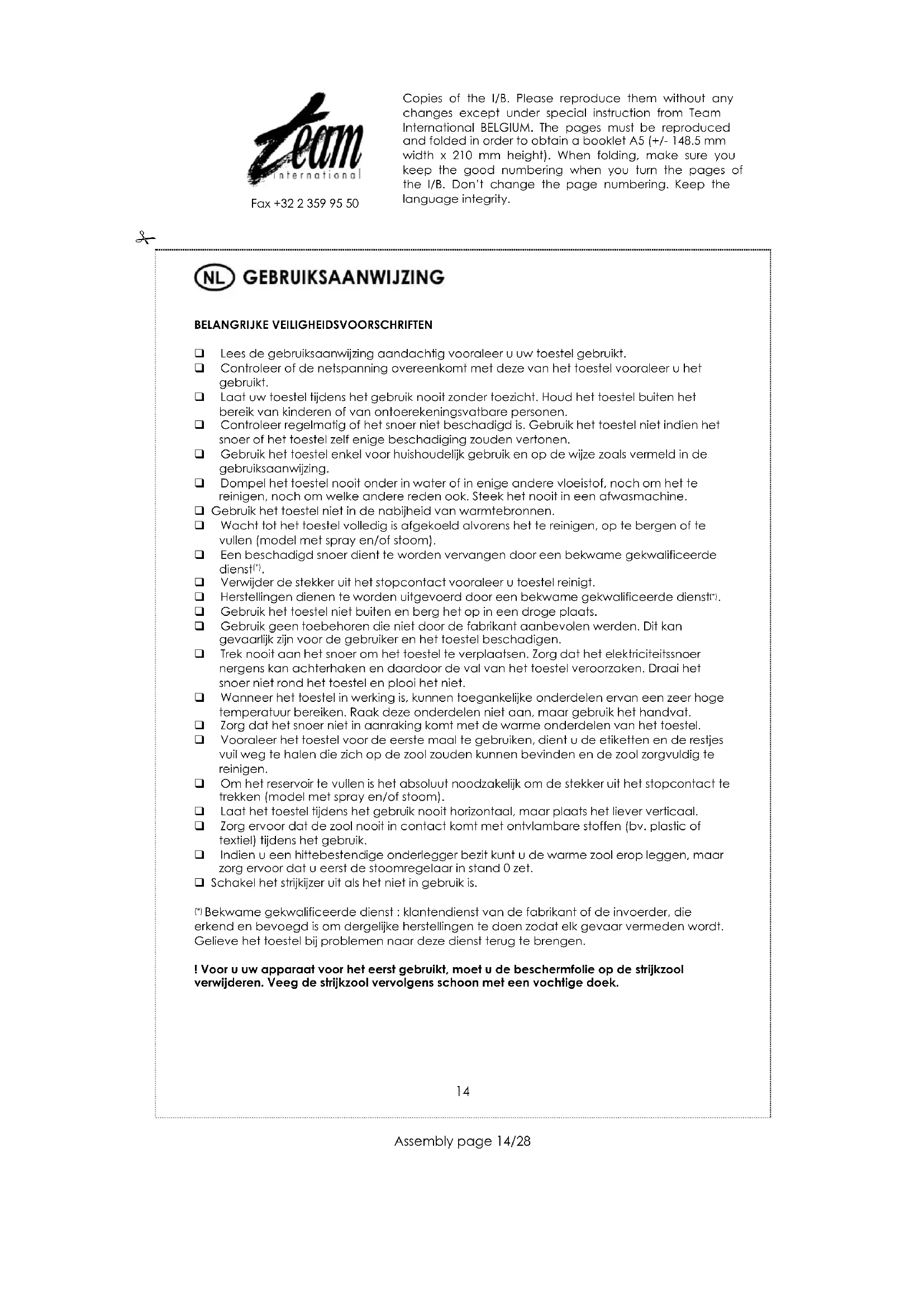 DAI 32 - Strijkijzer TEAM - Gratis gebruiksaanwijzing en handleiding