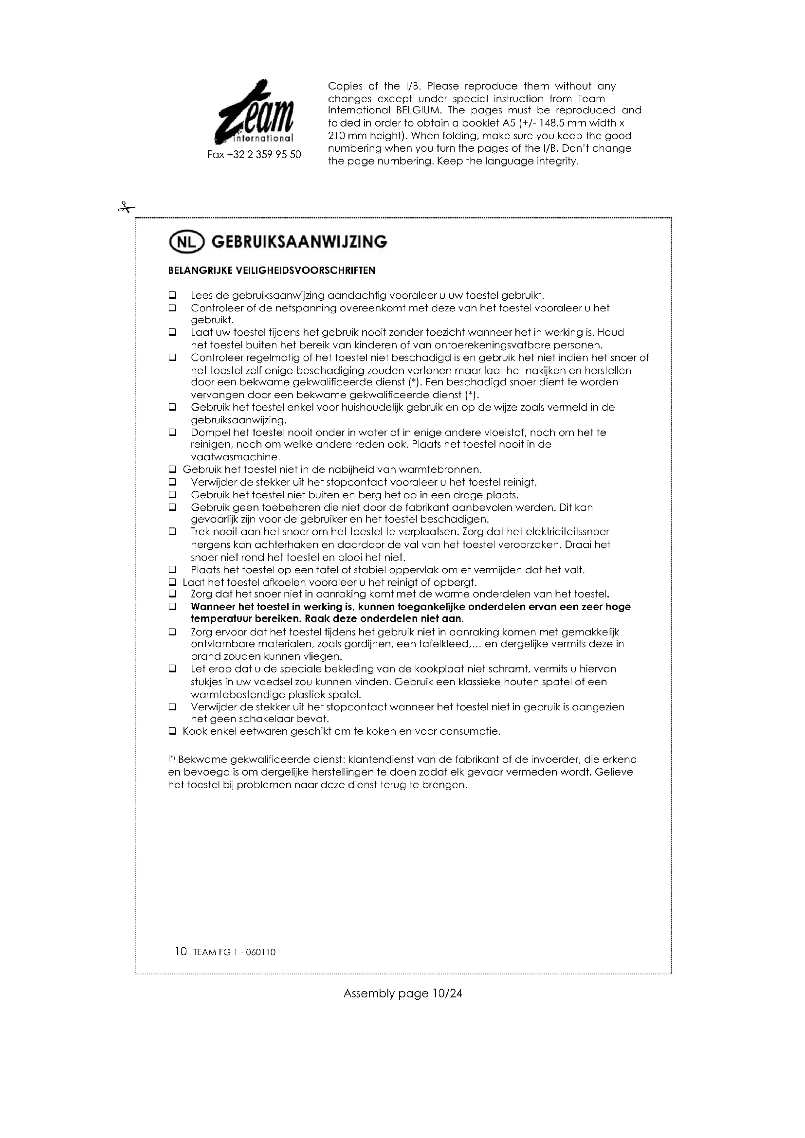 GEBRUIKSAANWIJZING FG 1 TEAM