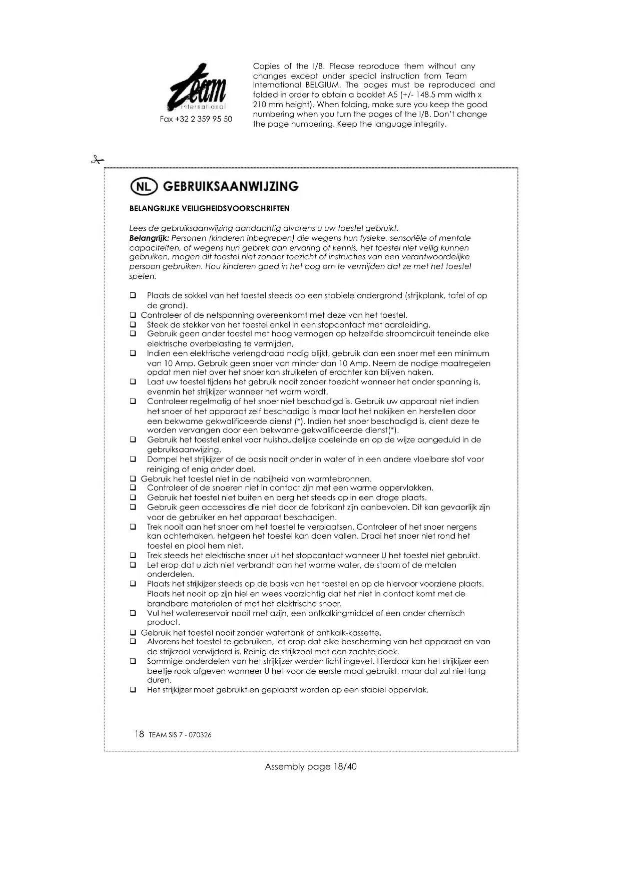 SIS 7 - Strijkijzer TEAM - Gratis gebruiksaanwijzing en handleiding