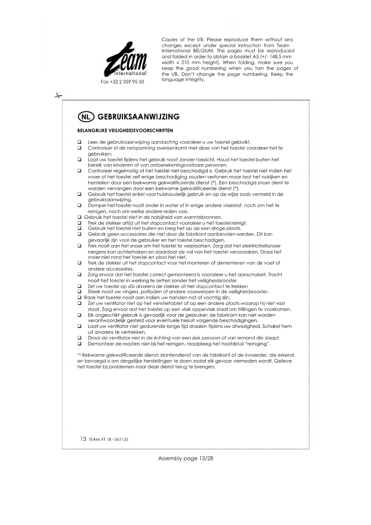 VT 18 - Ventilator TEAM - Gratis gebruiksaanwijzing en handleiding
