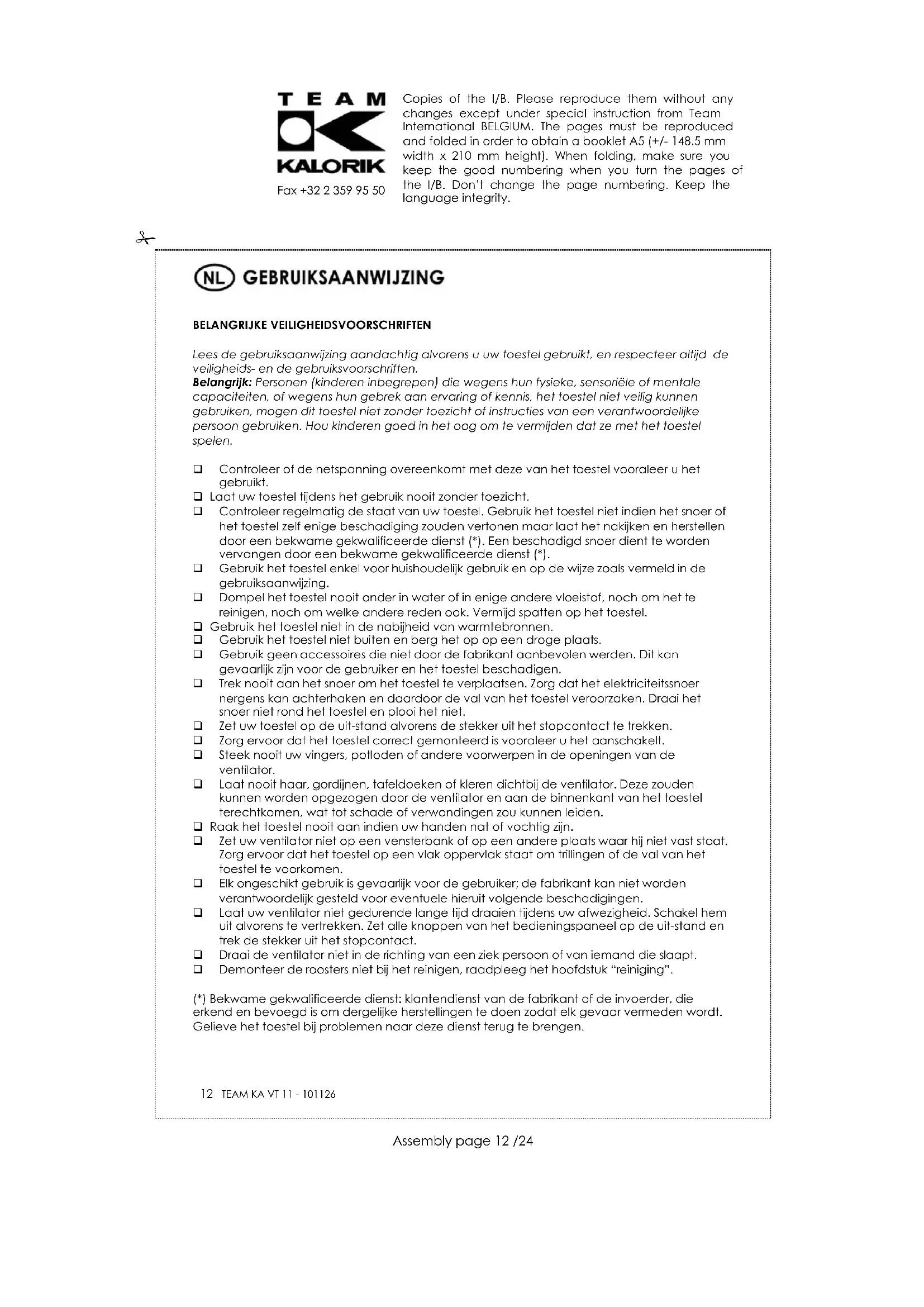 KA VT 11 - Ventilator TEAM - Gratis gebruiksaanwijzing en handleiding
