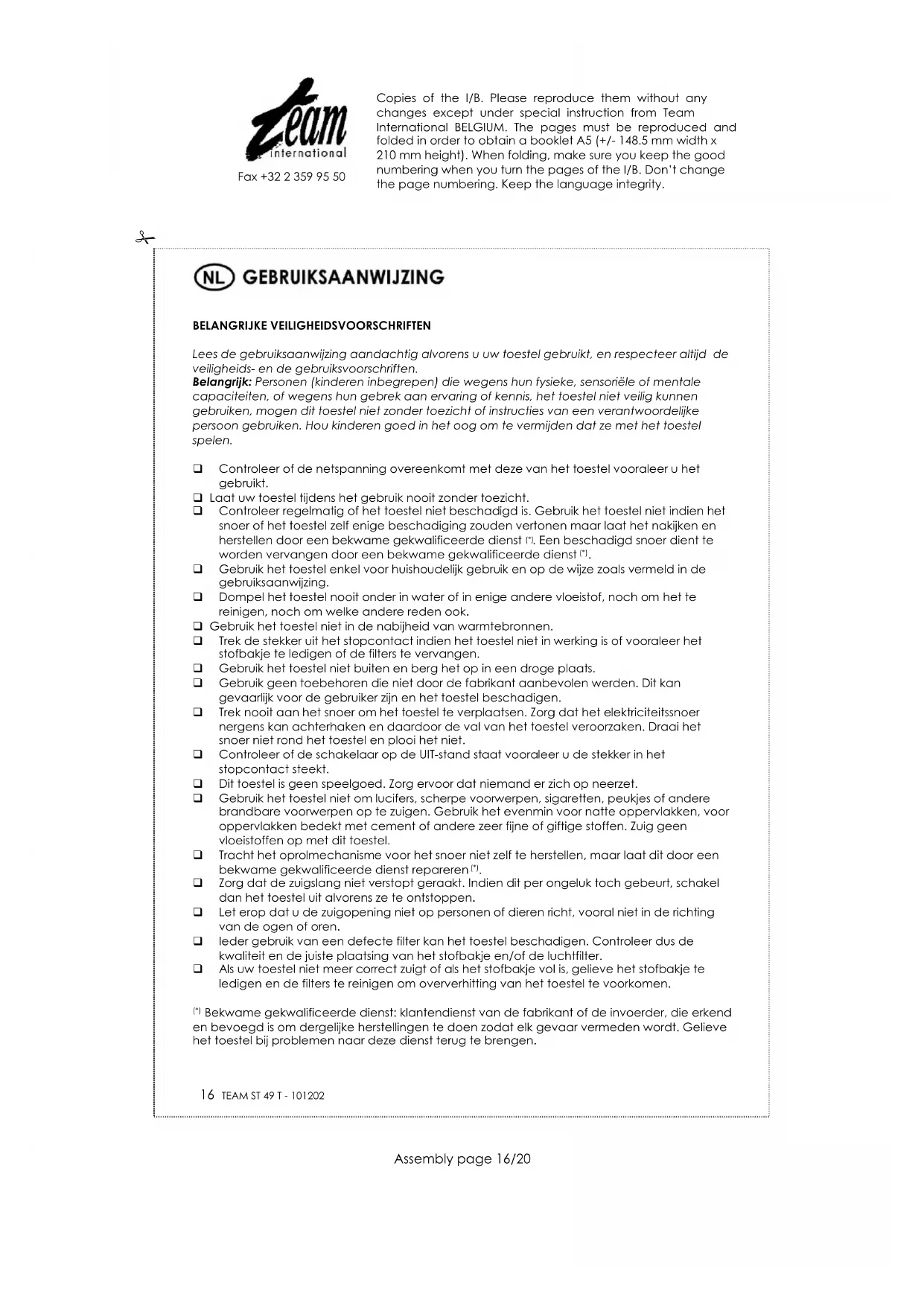GEBRUIKSAANWIJZING ST 49 TEAM