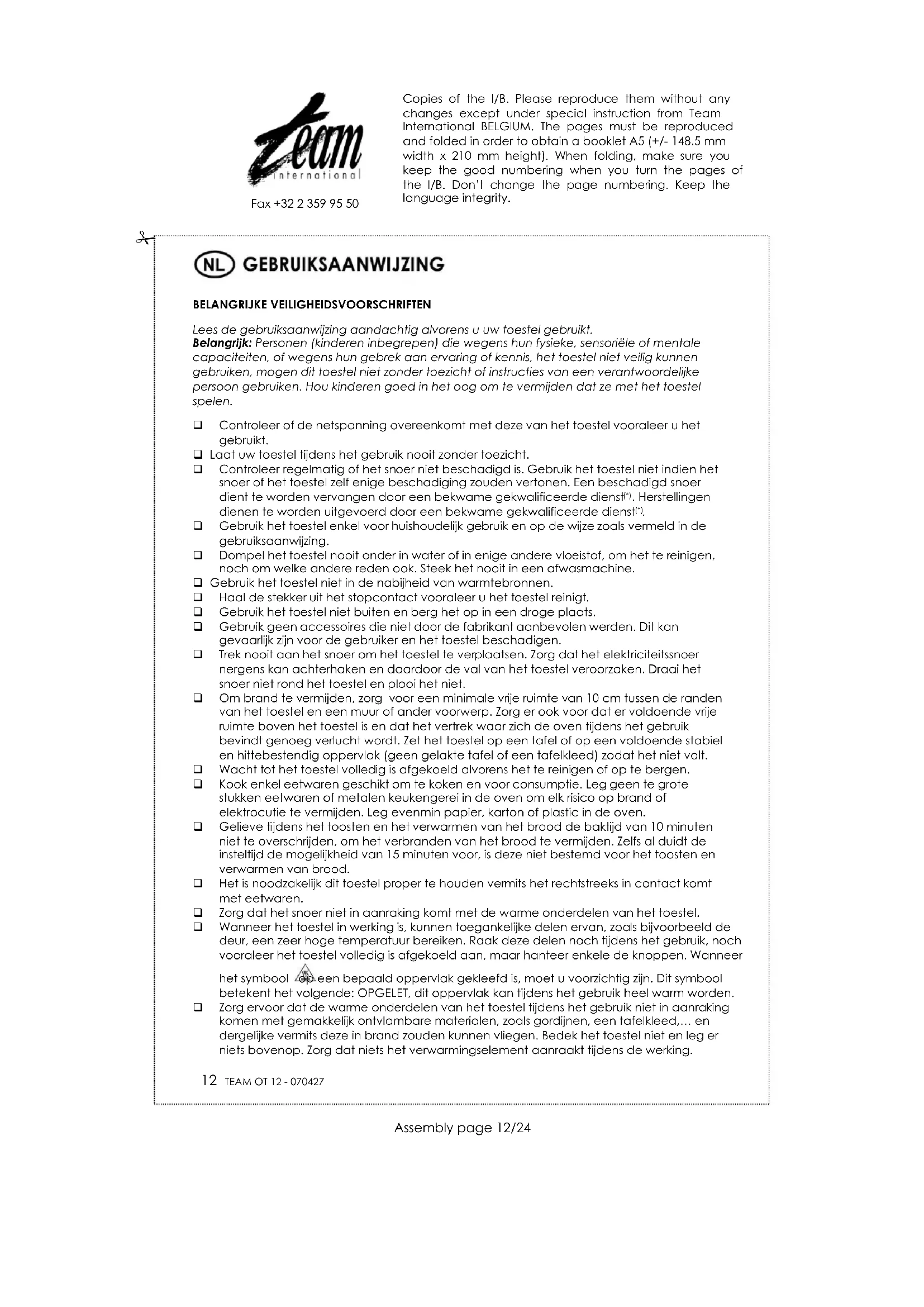GEBRUIKSAANWIJZING OT 12 TEAM