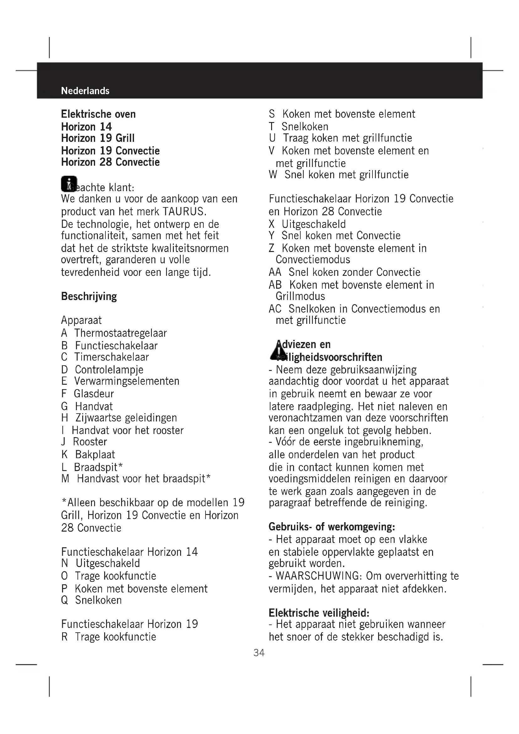 Horizon 14 - Oven TAURUS - Gratis gebruiksaanwijzing en handleiding