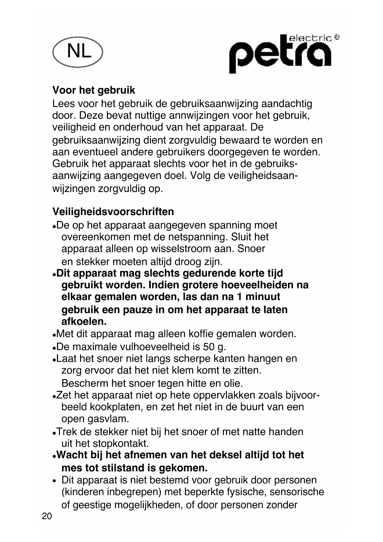 GEBRUIKSAANWIJZING M 95 Petra Electric