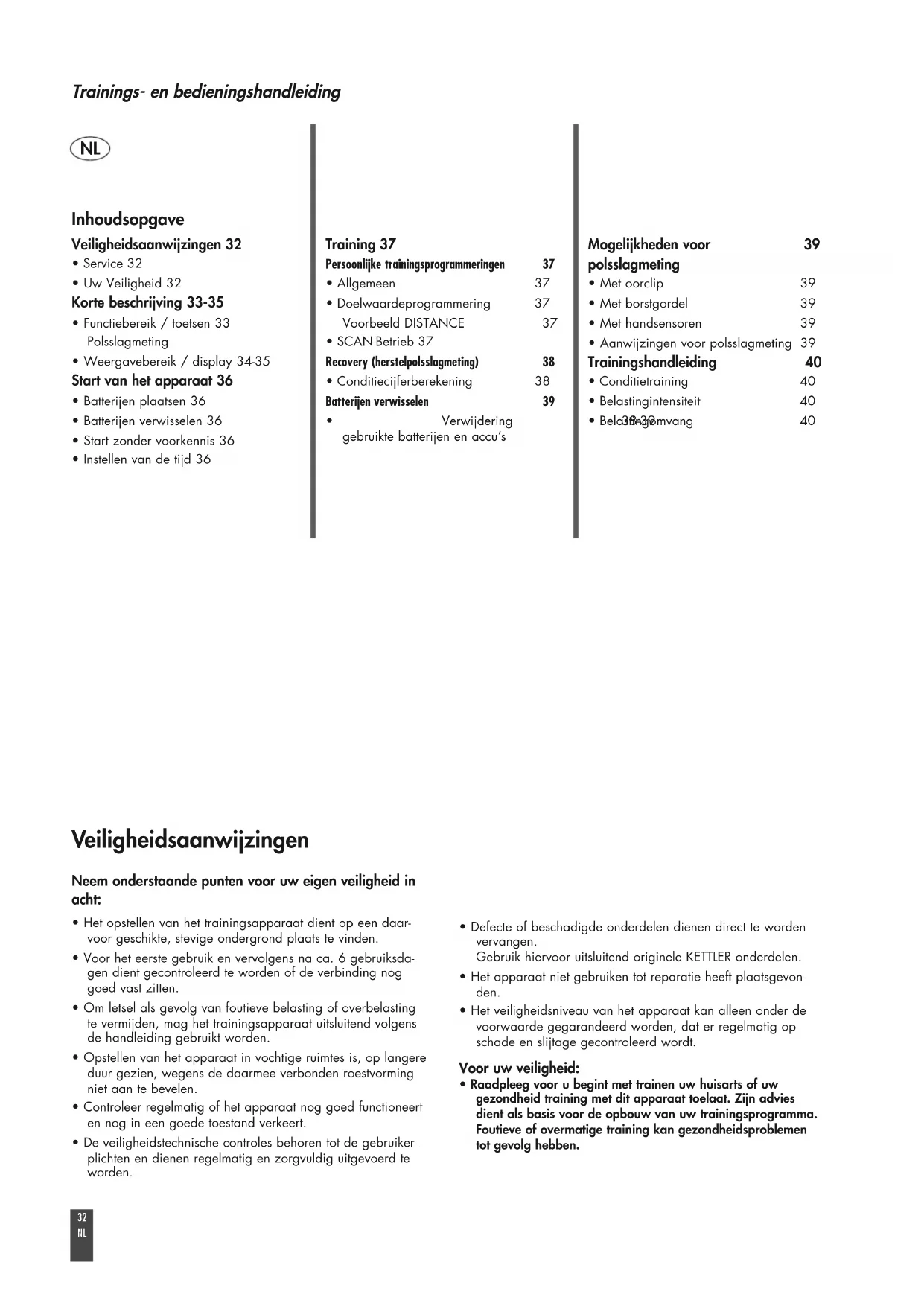 - Uw Veiligheid 32 Korte beschrijving 33-35