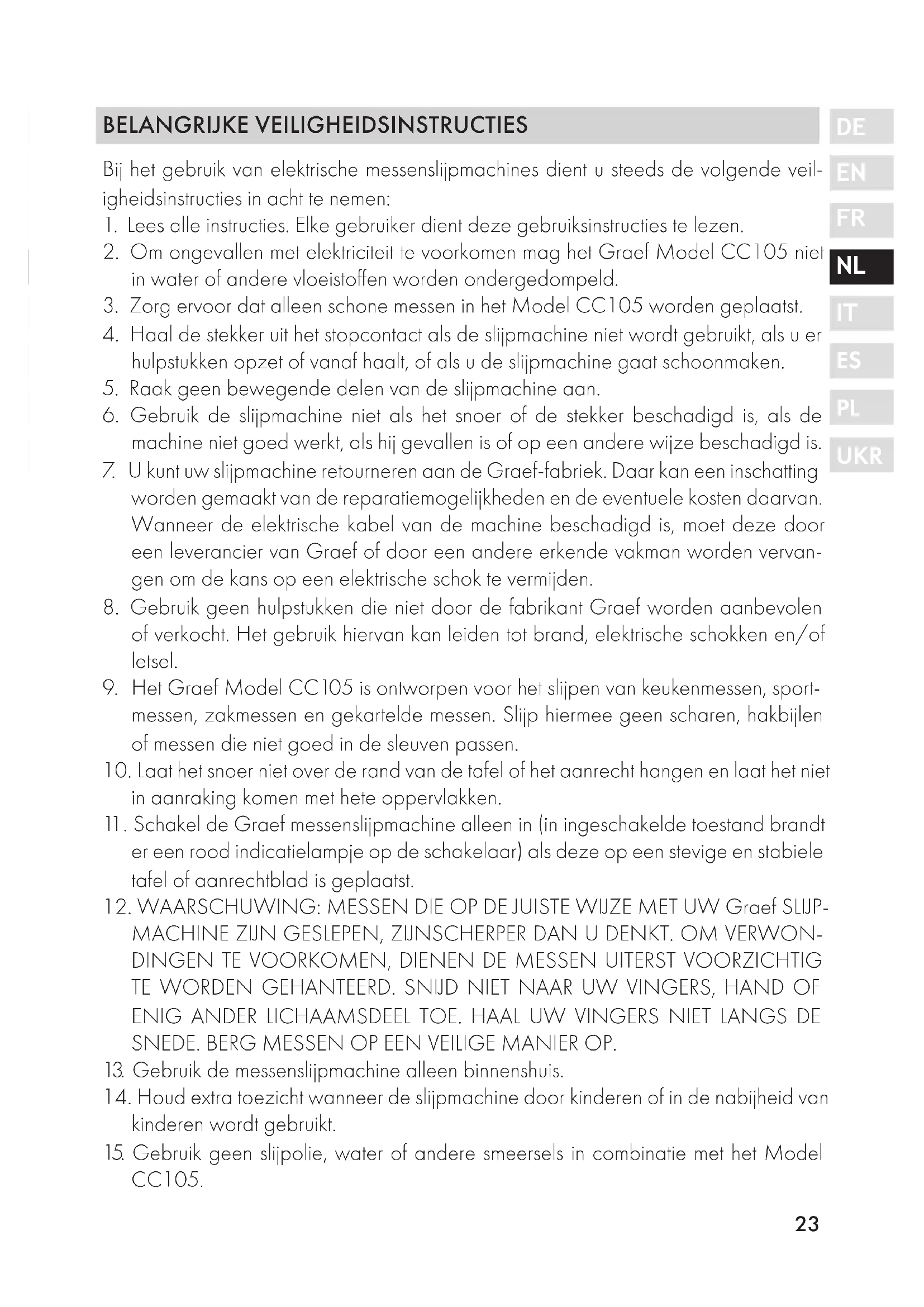 GEBRUIKSAANWIJZING Chef's Choice CC 105 GRAEF