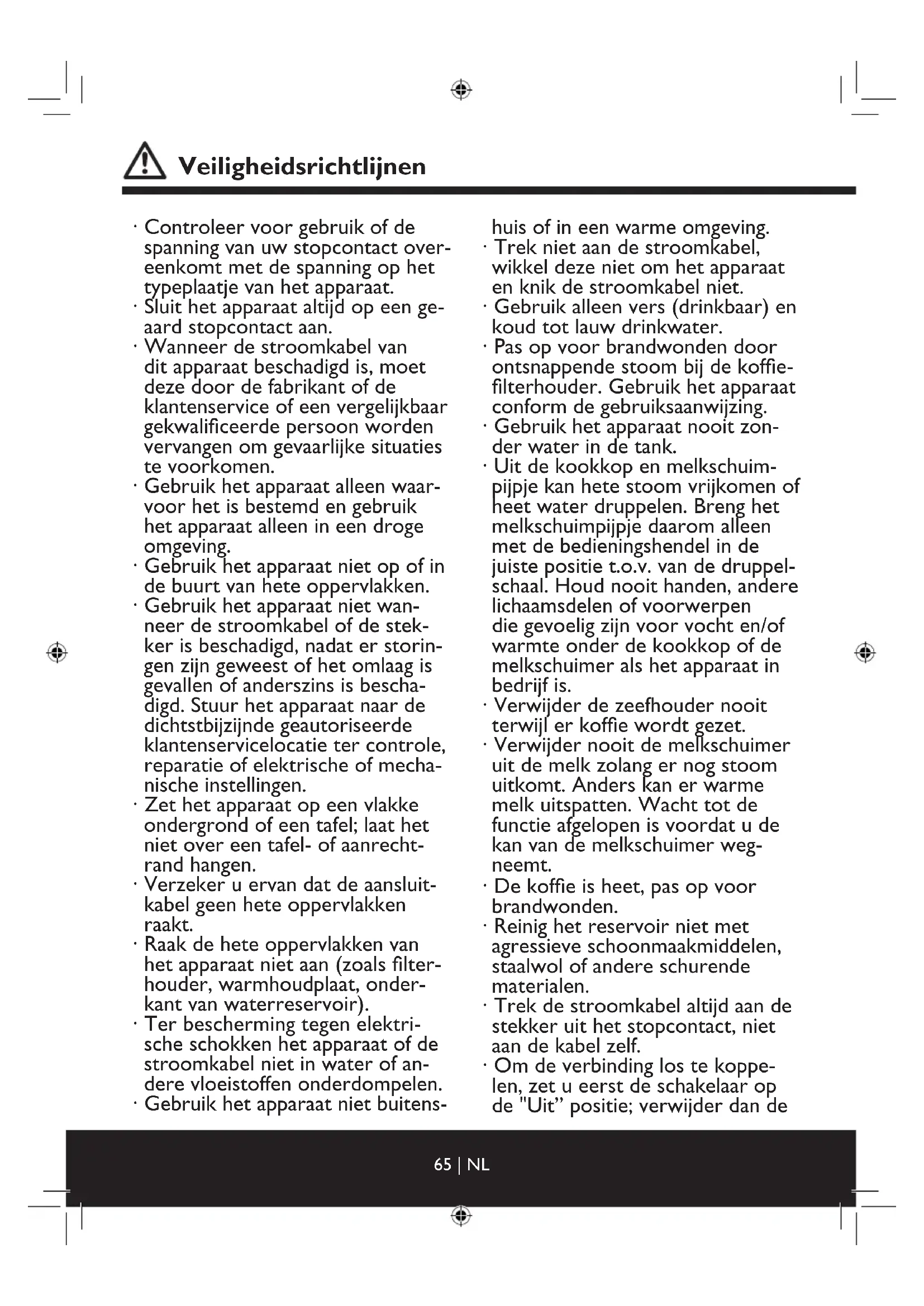 - Pas op voor brandwonden door ontsnappende stoom bij de koffie-filterhouser. Gebruik het apparaat conform de gebruiksaanwijzing.