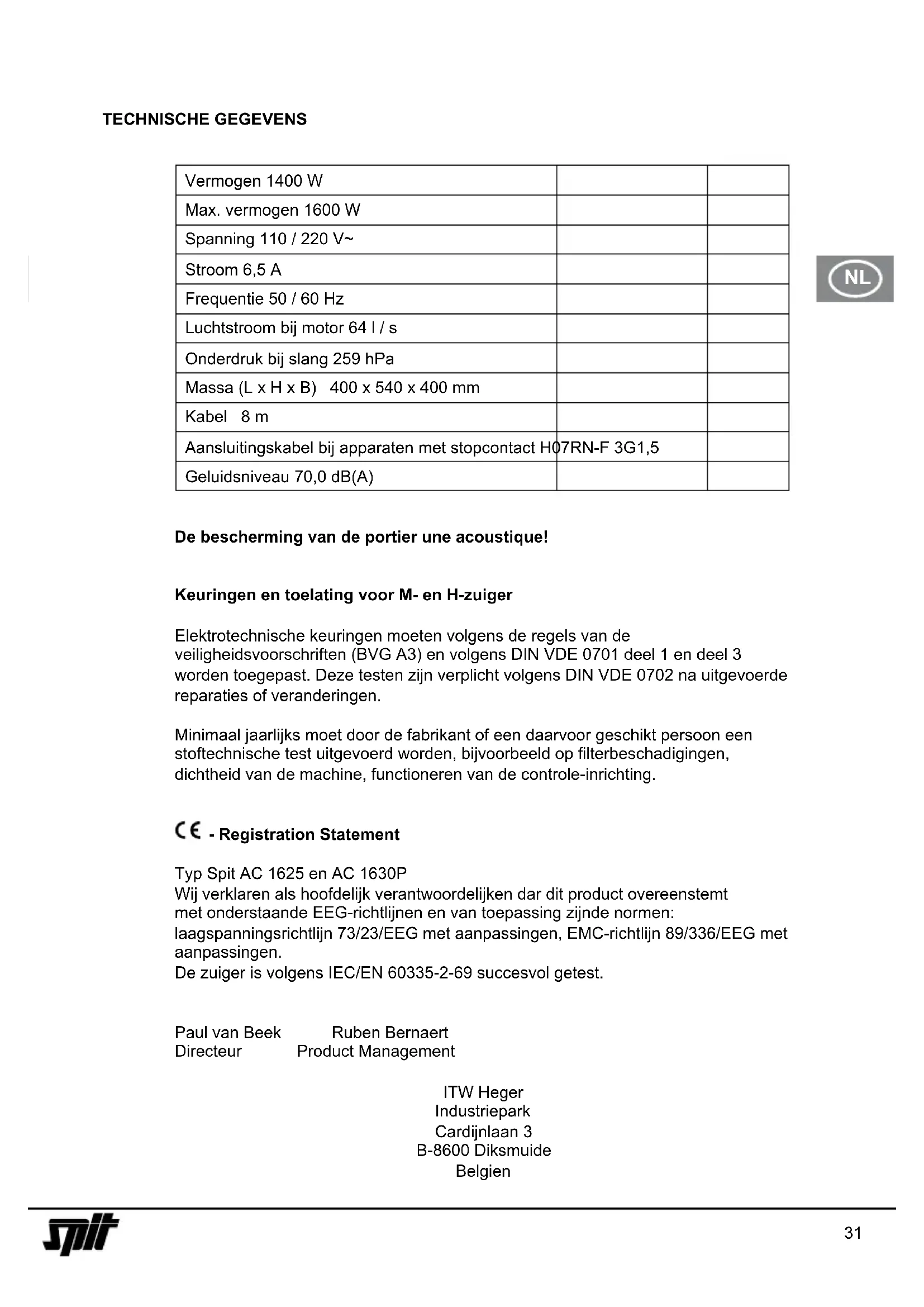 Download de handleiding voor uw Stofzuiger in PDF-formaat gratis! Vind uw handleiding AC1625 - Spit en neem uw elektronisch apparaat weer in handen. Op deze pagina staan alle documenten die nodig zijn voor het gebruik van uw apparaat. AC1625 van het merk Spit.