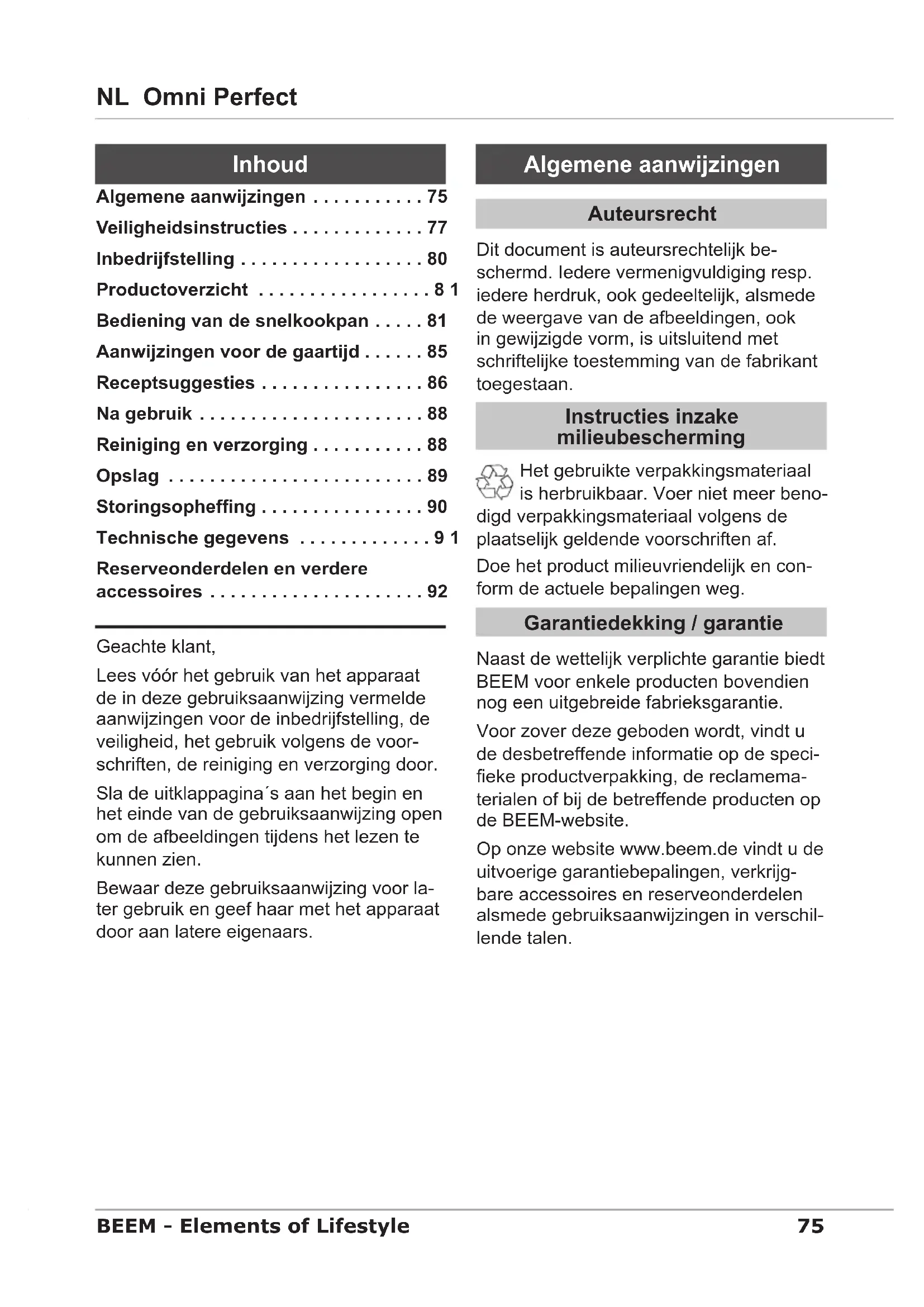 Op onze website www.beem.de vindt u de uitvoerige garantiebepalingen, verkrijgbare accessoires en reserveonderdelen alsmede gebruiksaanwijzingen in verschillende talen.