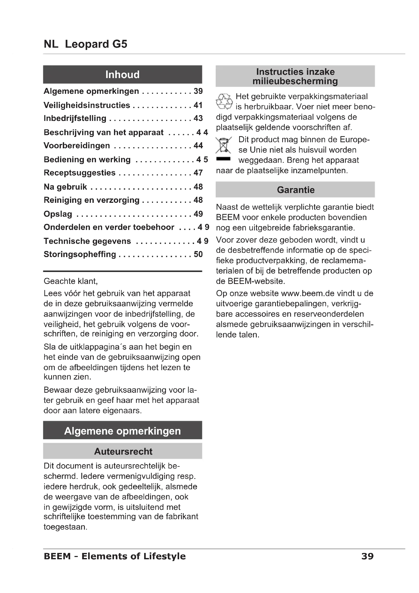Op onze website www.beem.de vindt u de uitvoerige garantiebepalingen, verkrijgbare accessoires en reserveonderdelen alsmede gebruiksaanwijzingen in verschillende talen.