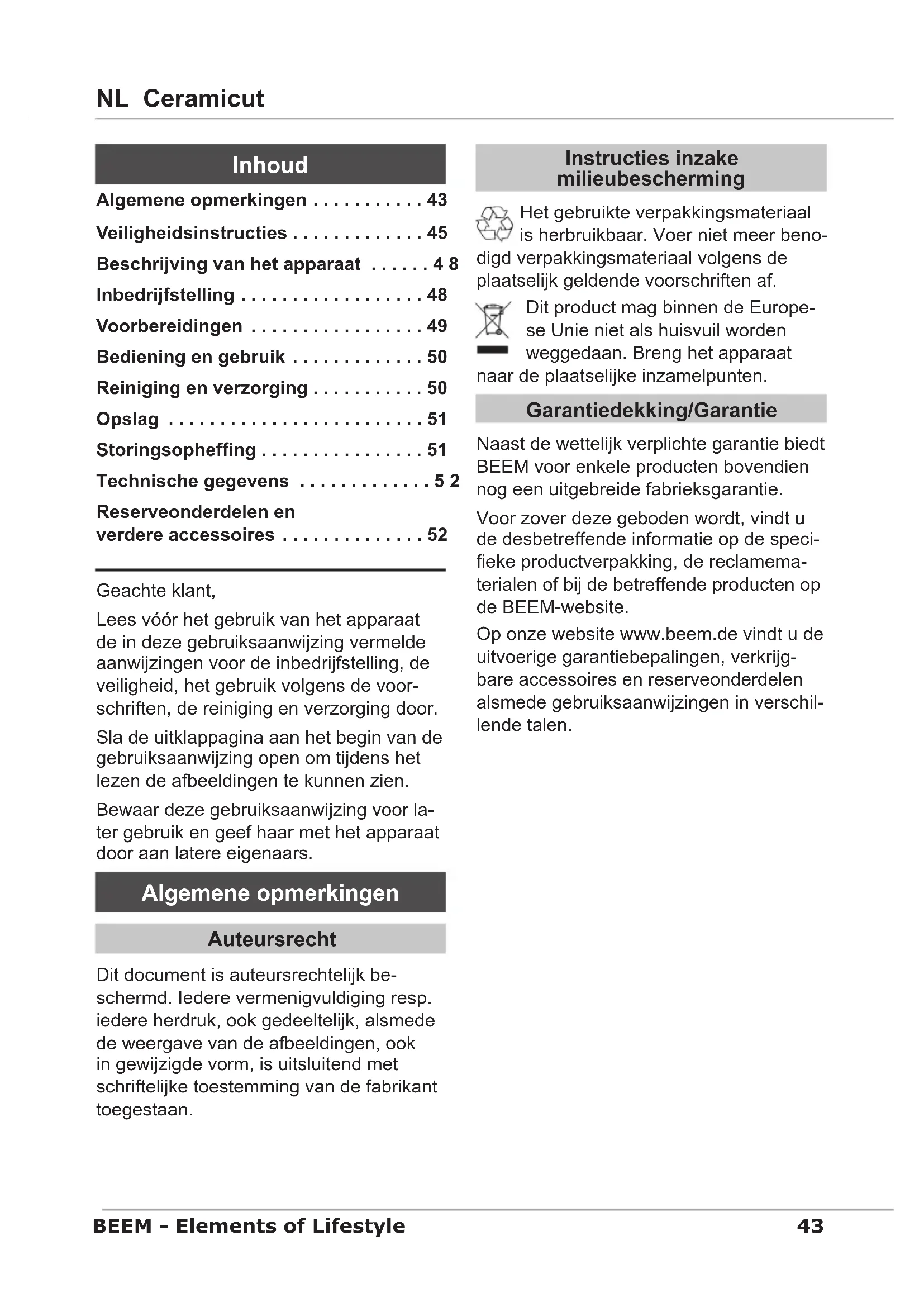 Op unsere website www.beem.de vindt u deuitvoerige garantiebepalingen, verkrijgbare accessoires en reserveonderdelen alsmede gebruiksaanwijzingen in verschlende talen.