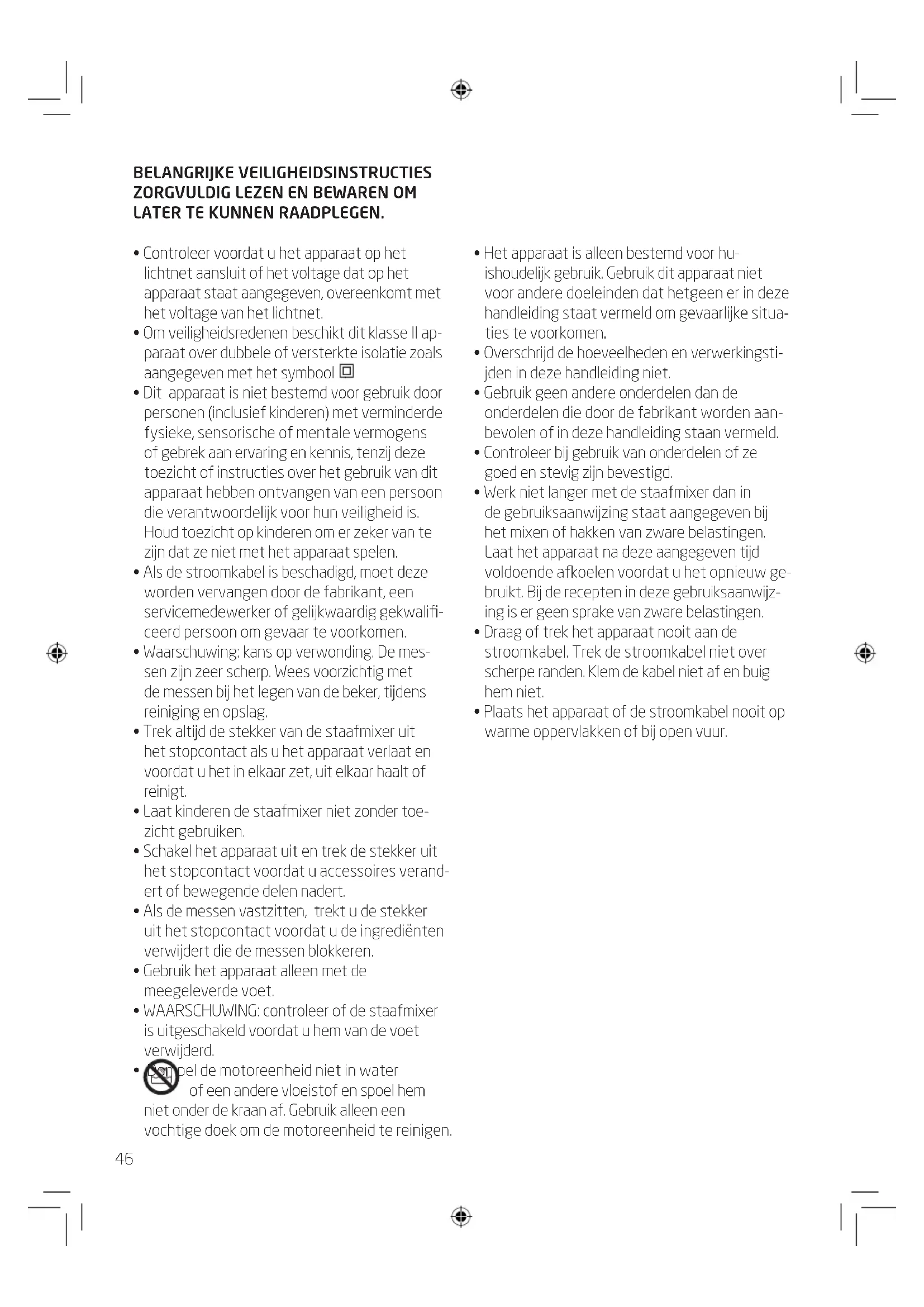 - Om veiligheidsredenen beschikt dit klassie II apparaat over dubbele of versterkte isolatie zoals aangegeven met het symbool