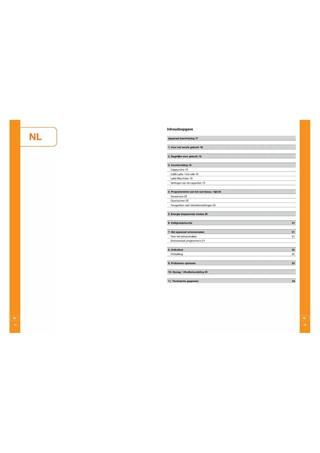 Verwarmen 20 Opschuimen 20 Terugzetten naar fabrieksinstellingen 20