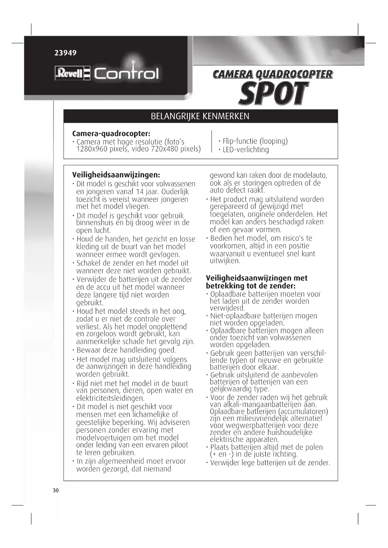 Download de handleiding voor uw Drone in PDF-formaat gratis! Vind uw handleiding Spot - Revell en neem uw elektronisch apparaat weer in handen. Op deze pagina staan alle documenten die nodig zijn voor het gebruik van uw apparaat. Spot van het merk Revell.