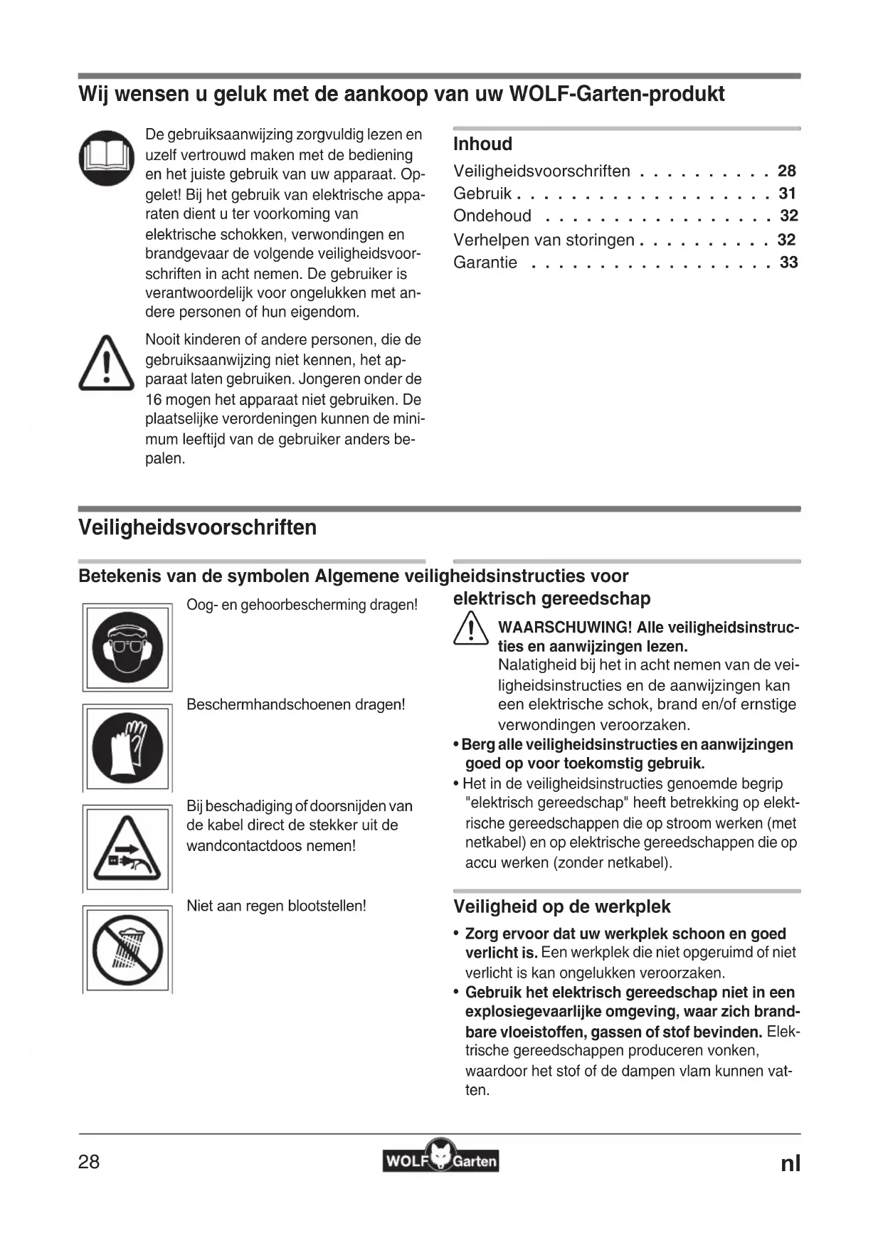 - Wij wensen u geluk met de aankoop van uw WOLF-Garten-produkt Inhoud Veiligheidsvoorschriften p. 28