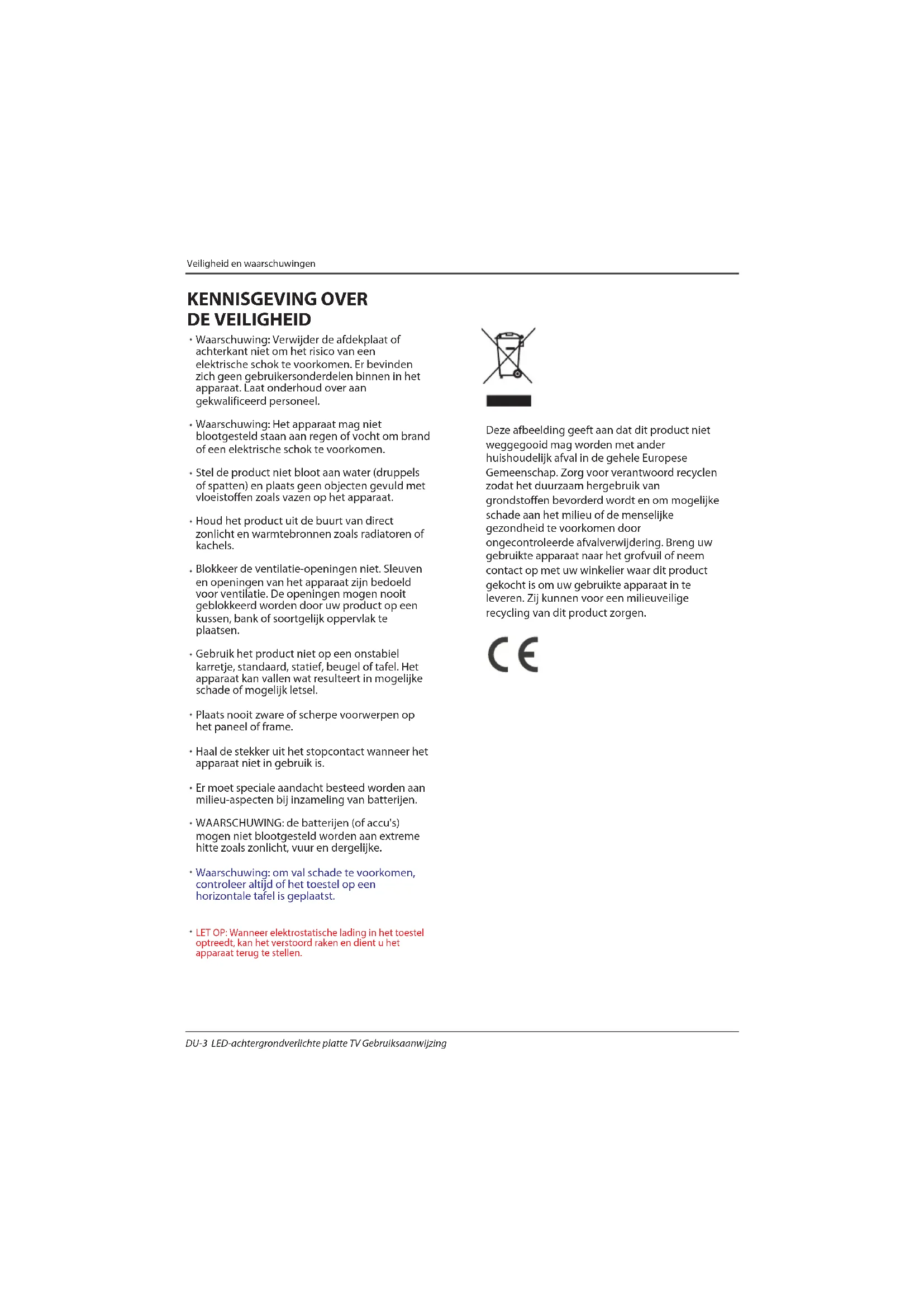 LED-achtergrondverlichte platte TV Gebruiksaanwijzing DU-4INSTALLATIE OPGELET